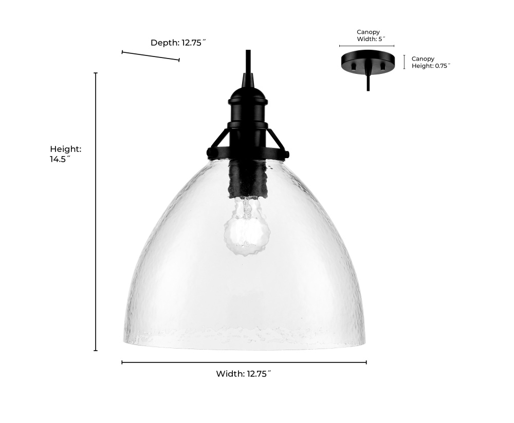 The Khrisa Family of pendant lighting combines modern styling with distinctive shades to create a lighting masterpiece perfect for the kitchen, dining area, or entryway. The stylized 1-light fixtures, finished in brushed nickel, polished nickel, vintage brass, or matte black, feature post-industrial styled hardware, creating a contemporary profile. The gorgeous, hammered glass shades are available in either a drum or bell-shaped silhouette and create a unique dappled lighting effect.