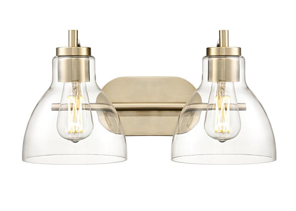 Refined simplicity is the hallmark of the Knightsdale Family of vanity lighting. Graceful bell-shaped clear glass shades set an elegant tone and provide a crisp clear lighting effect perfect for any bath. The minimalistic hardware strikes the perfect balance with the shades and is finished in matte black, chrome, or modern gold. Available as 1, 2 and 3-light options, these fixtures create a sleek and understated profile.