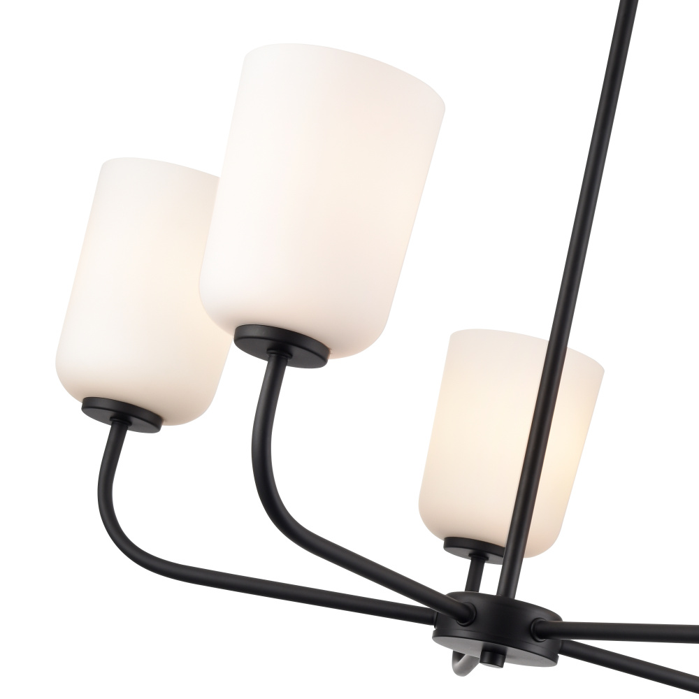 The Laphia Family features sleek lines, a graceful profile, and brilliant white, bell-shaped glass shades creating an ambient glow. The Family is available as sconce, chandelier, pendant, mini-pendant, semi-flush mount, flush mount, and an excellent vanity task light. Perfect for any interior plan from Craftsmen to modern farmhouse, these fixtures are finished in stylish brushed nickel, matte black, or modern gold.