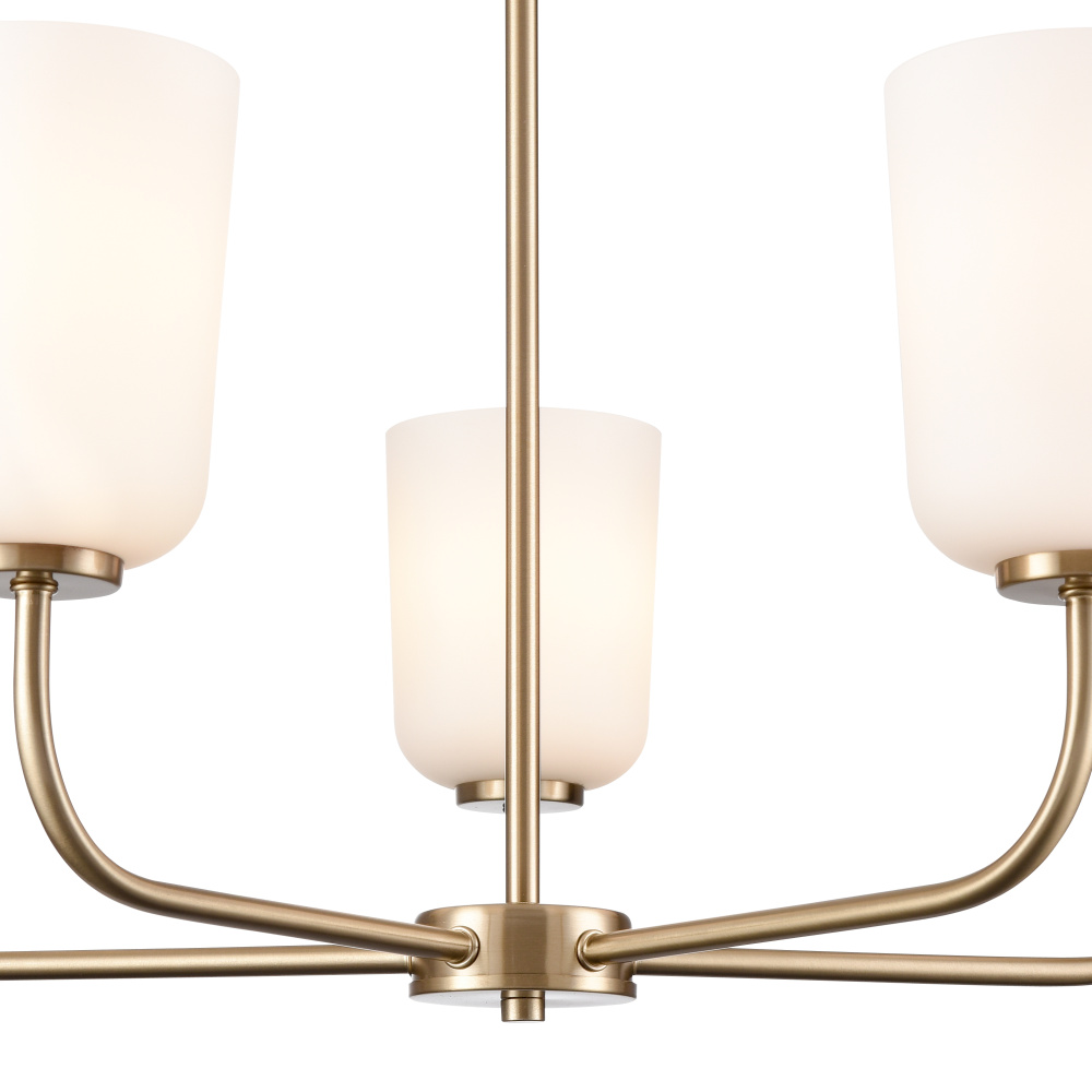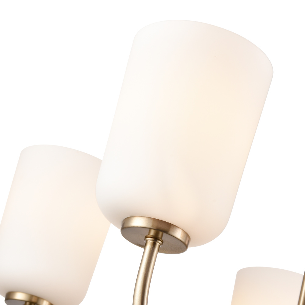 The Laphia Family features sleek lines, a graceful profile, and brilliant white, bell-shaped glass shades creating an ambient glow. The Family is available as sconce, chandelier, pendant, mini-pendant, semi-flush mount, flush mount, and an excellent vanity task light. Perfect for any interior plan from Craftsmen to modern farmhouse, these fixtures are finished in stylish brushed nickel, matte black, or modern gold.