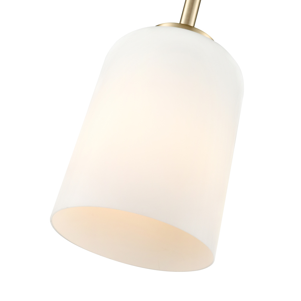 The Laphia Family features sleek lines, a graceful profile, and brilliant white, bell-shaped glass shades creating an ambient glow. The Family is available as sconce, chandelier, pendant, mini-pendant, semi-flush mount, flush mount, and an excellent vanity task light. Perfect for any interior plan from Craftsmen to modern farmhouse, these fixtures are finished in stylish brushed nickel, matte black, or modern gold.