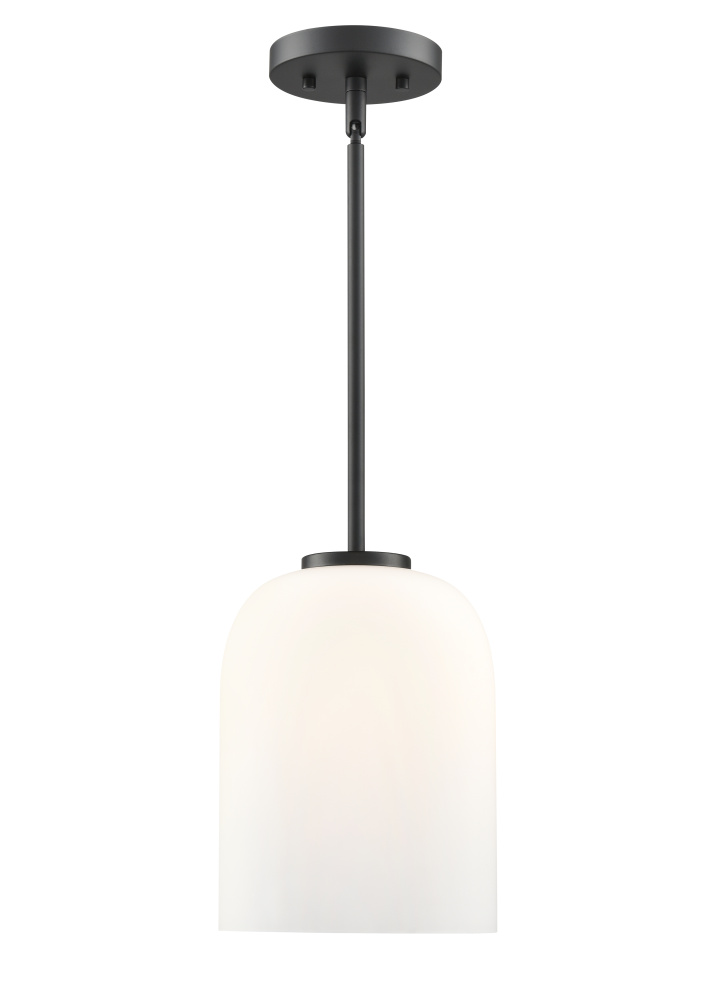 The Laphia Family features sleek lines, a graceful profile, and brilliant white, bell-shaped glass shades creating an ambient glow. The Family is available as sconce, chandelier, pendant, mini-pendant, semi-flush mount, flush mount, and an excellent vanity task light. Perfect for any interior plan from Craftsmen to modern farmhouse, these fixtures are finished in stylish brushed nickel, matte black, or modern gold.