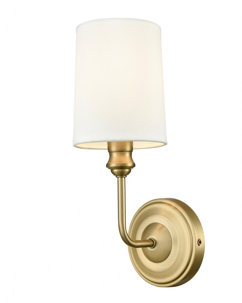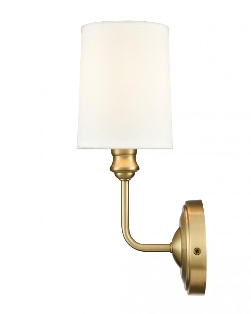 The Leena Family of sconce lighting is reminiscent of vintage candleholders influenced by Early American design. Finished in matte black, polished nickel, or vintage brass, the sconces are available as 1-, 2-, and 3-light options. These classic fixtures are finished with white fabric shades for a warm glow and are perfect for hallway, bath, or bedroom.