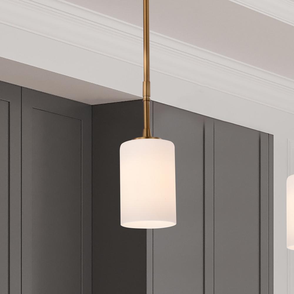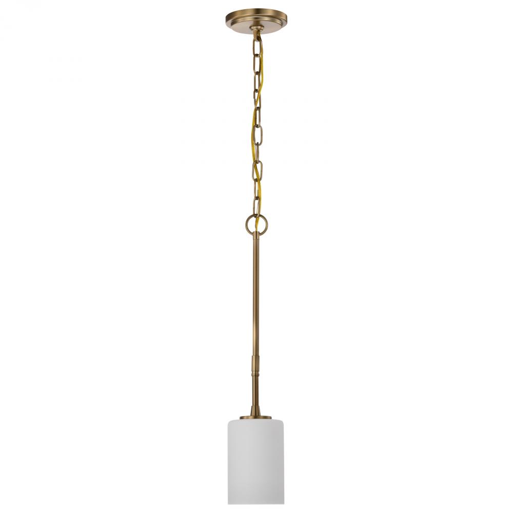 Liam; 1 Light Mini Pendant; Burnished Brass; White Opal Glass