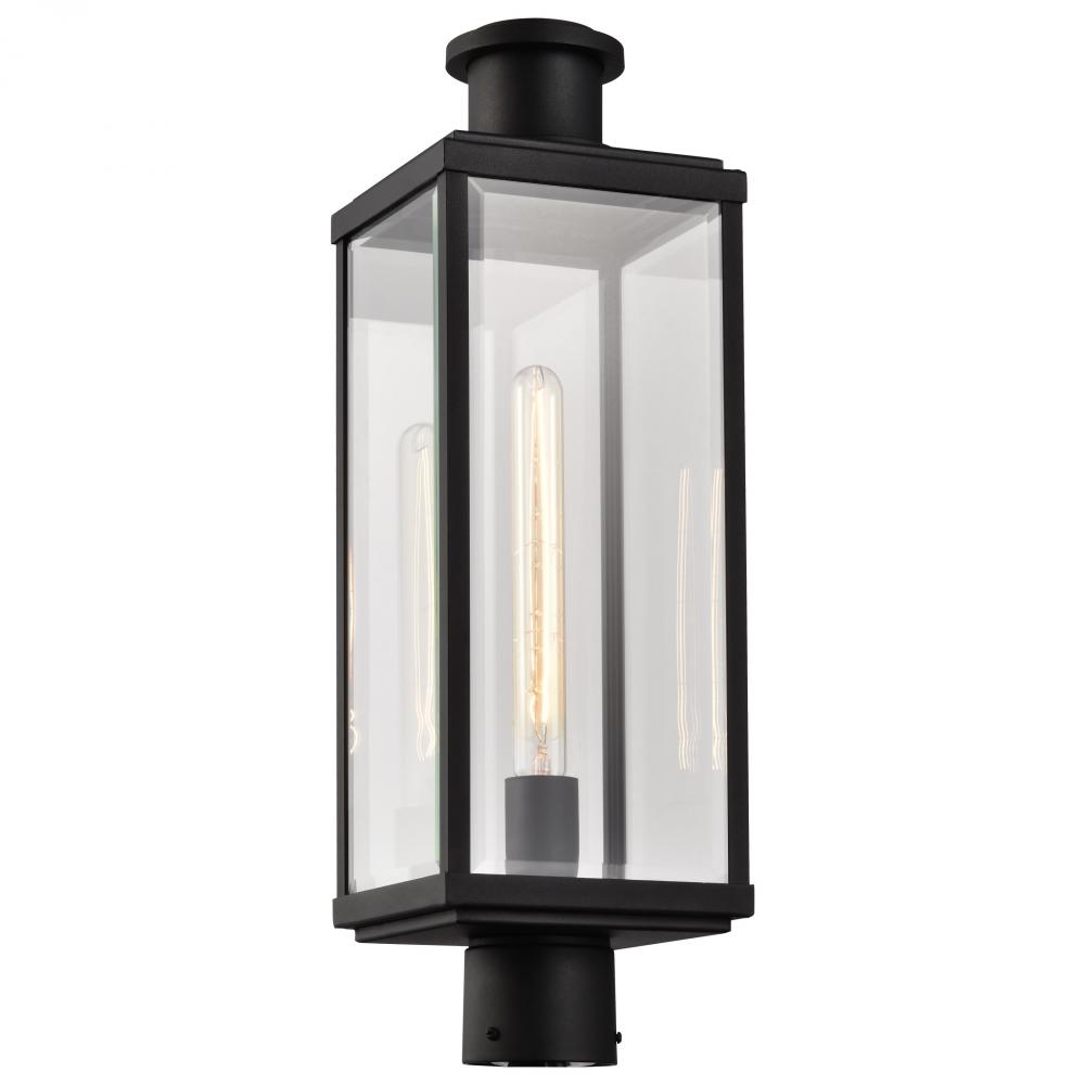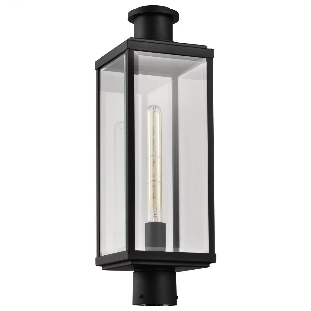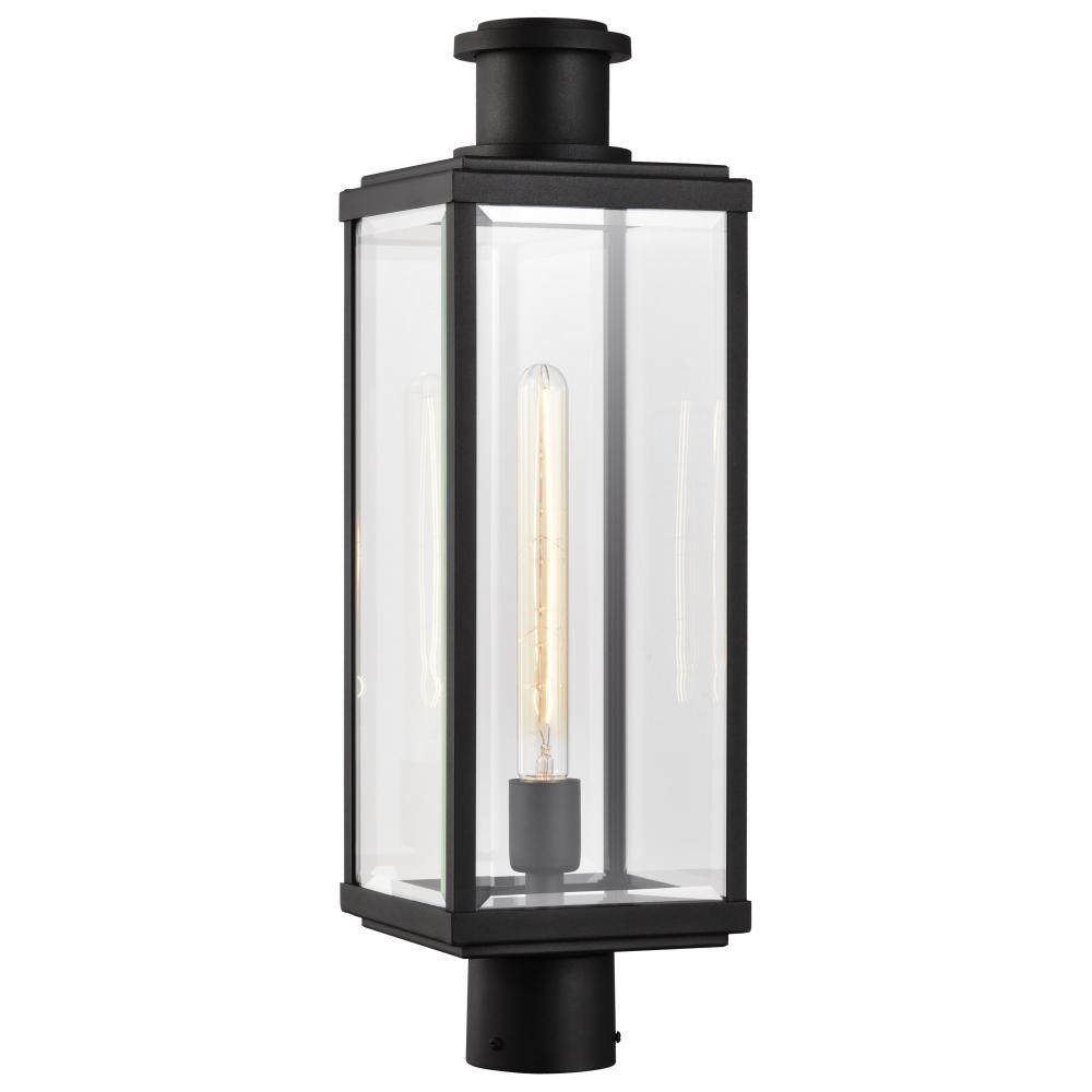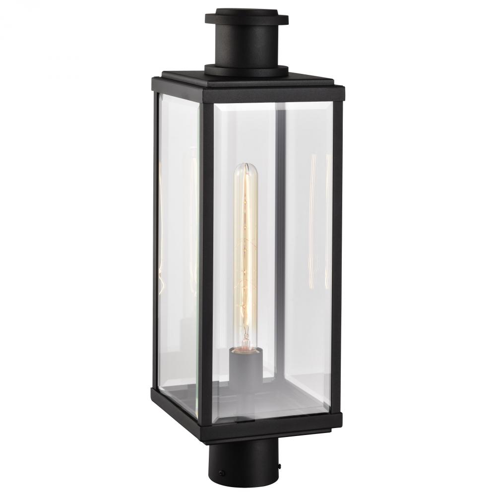 Luca; Outdoor Post Lantern; Sand Black Finish; Clear Beveled Glass