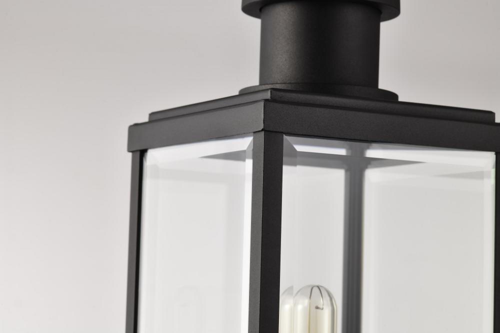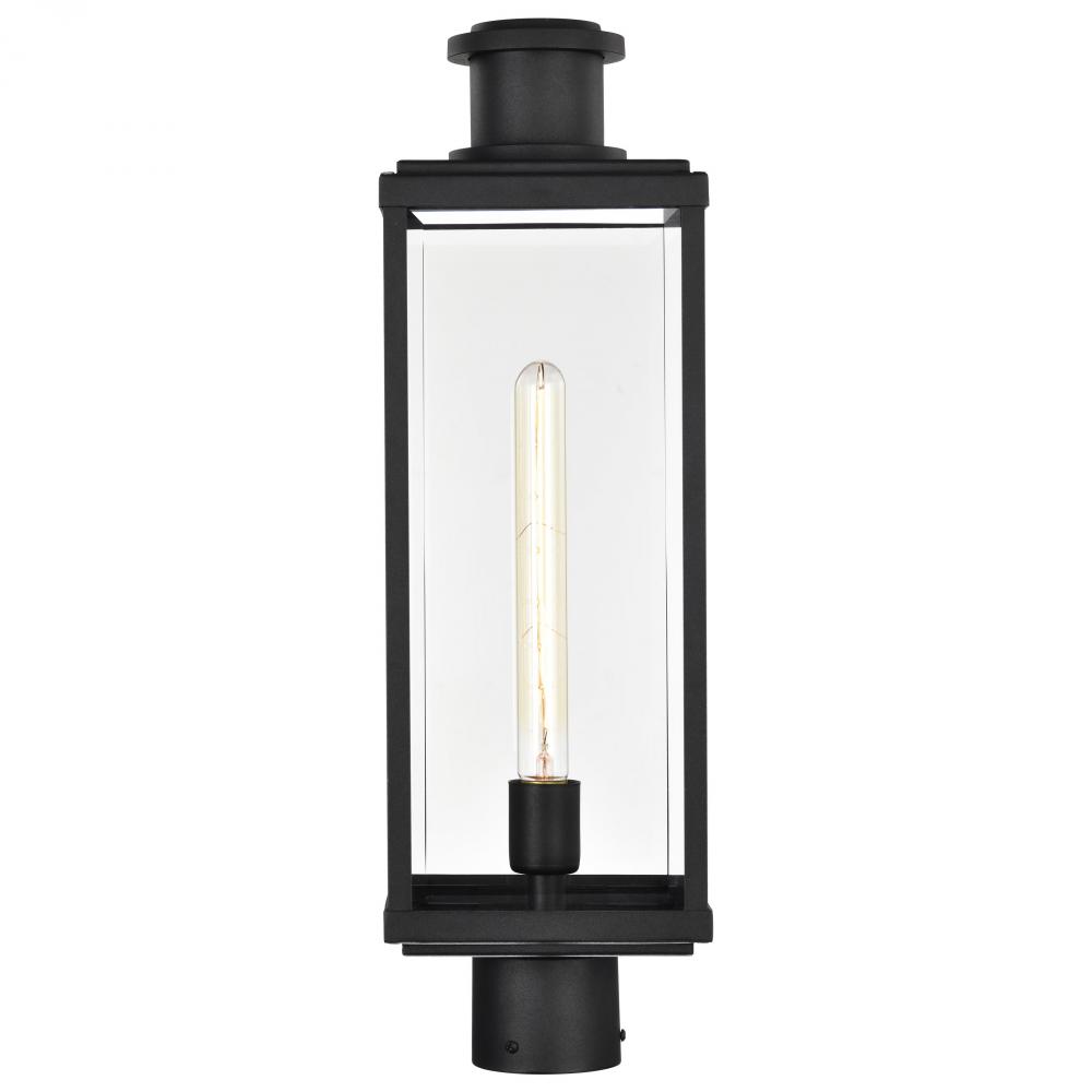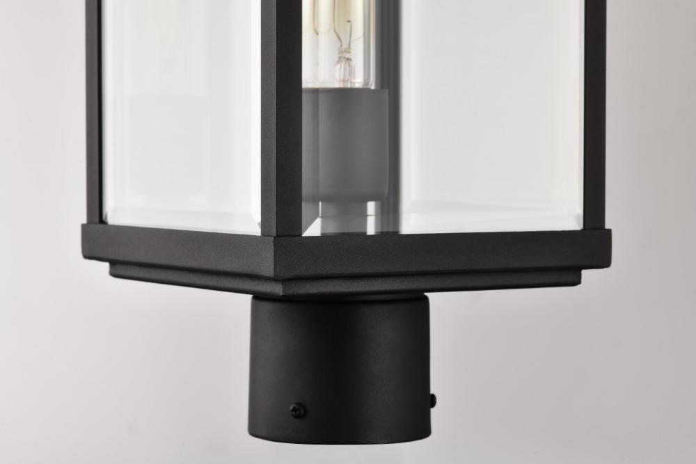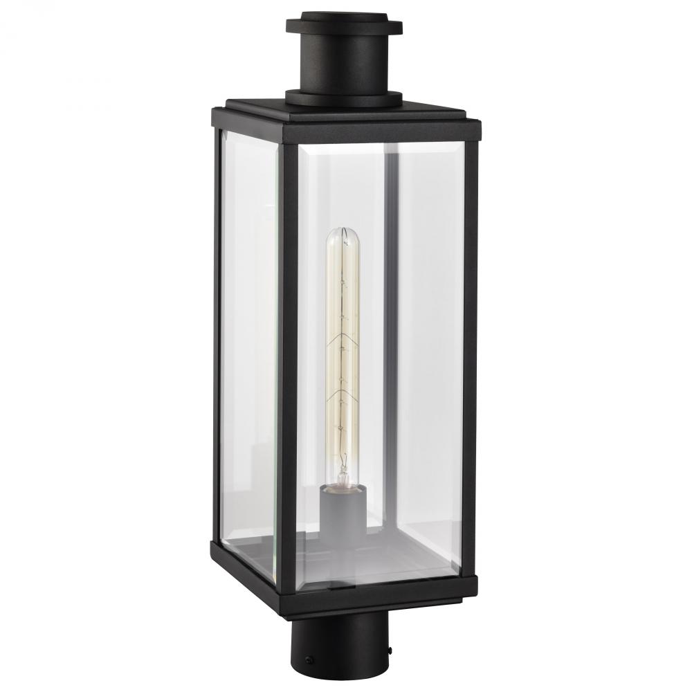 Luca; Outdoor Post Lantern; Sand Black Finish; Clear Beveled Glass