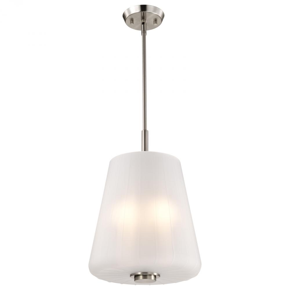 Finished in Brushed Nickel with Etched White Glass