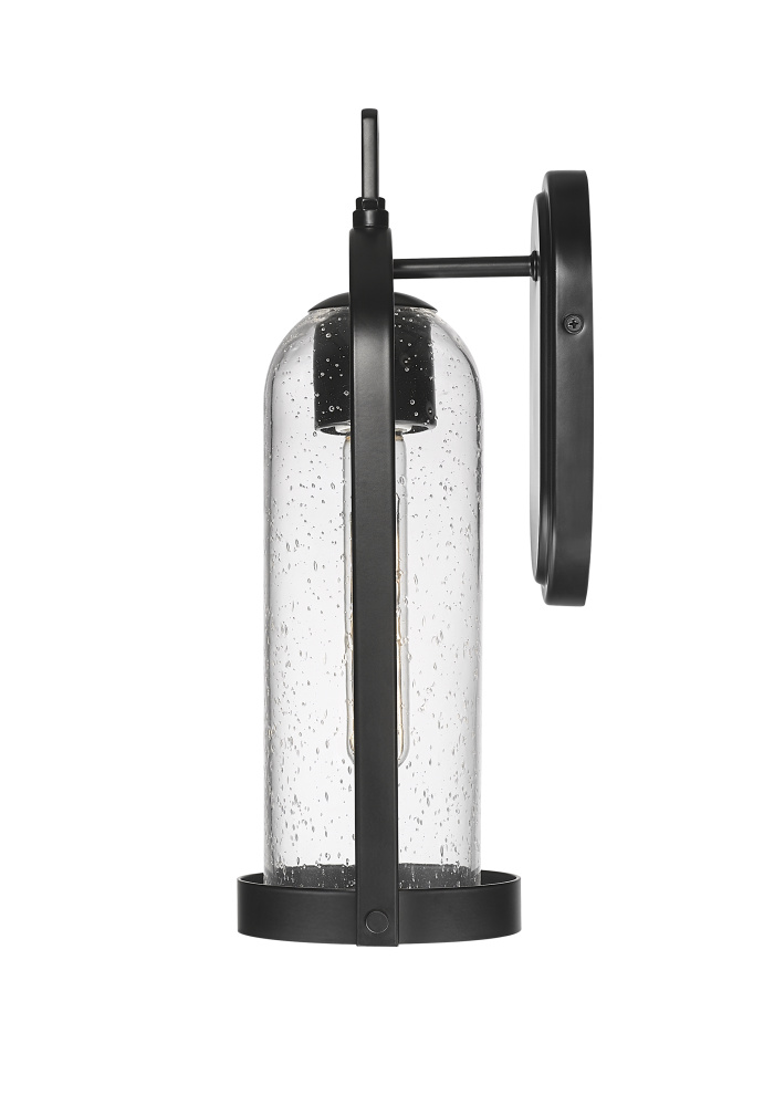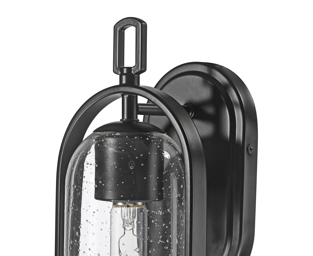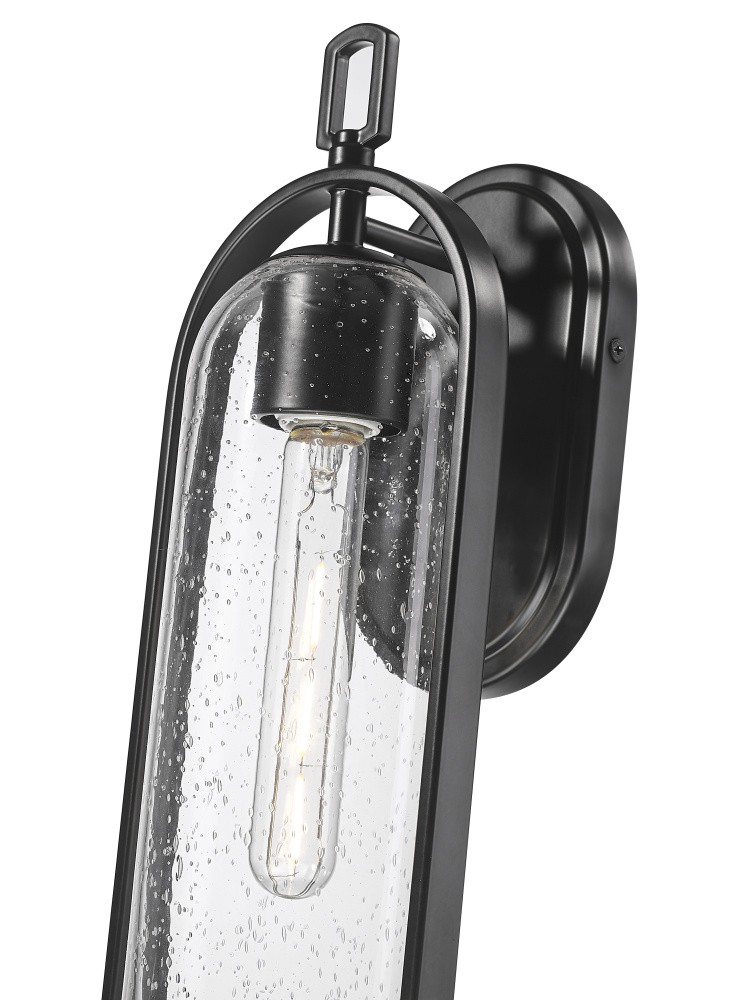 The Luxio Family of outdoor lighting is a fashionable take on the classic lantern profile. The birdcage-inspired metalwork is enhanced with modern styling and creates the perfect framing for the elongated clear-seeded glass shade. Available as 1-light sconce or 1-light hanging lantern and finished in powder coat black, these dynamic fixtures invoke the perfect look for any exterior, from ultra-modern to Mission Revival.