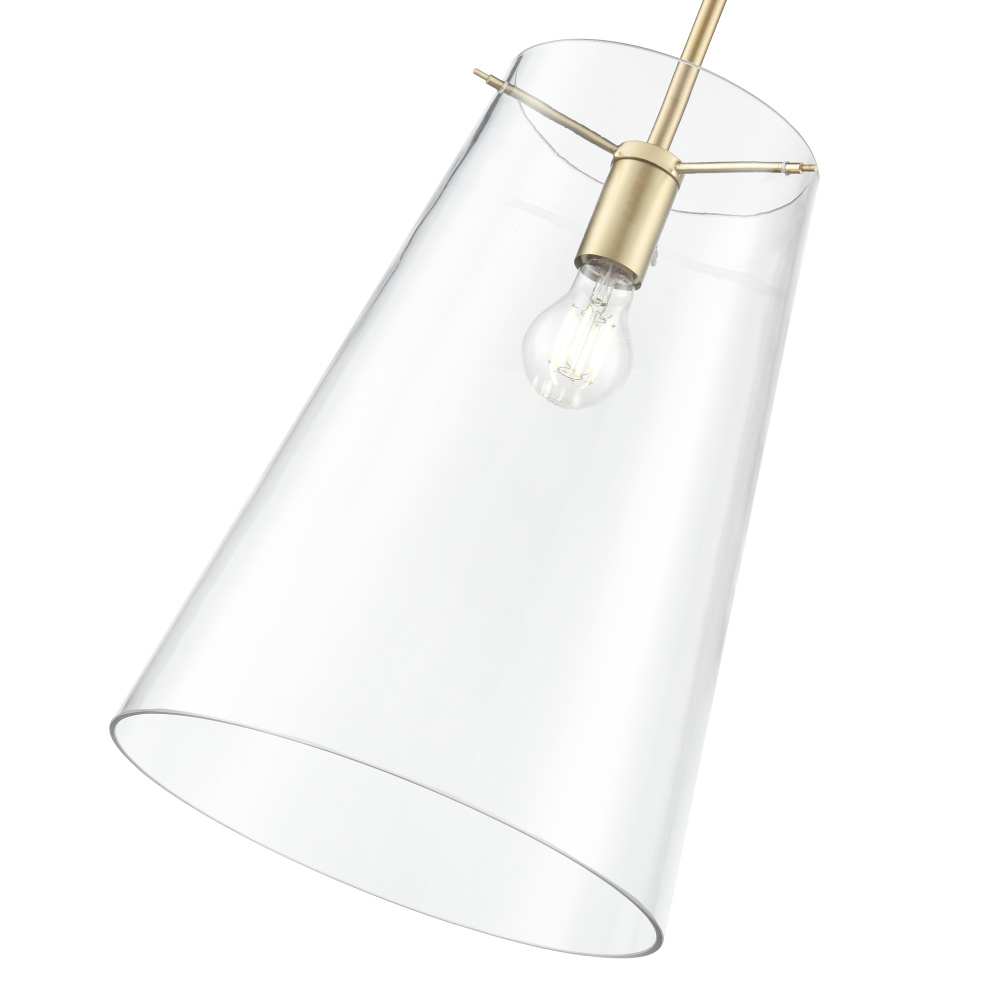 Clean geometric lines produce a luxurious look for the Maccan Family of interior lighting. These sophisticated fixtures, available as a 5- or 8-light chandelier and 1-light pendant, are finished in classic vintage brass. The crystal-clear glass shades and the artistically crafted hardware work in perfect harmony to create a cosmopolitan appearance. The overall effect is the perfect complement for any interior, from ultra-modern to vintage chic.