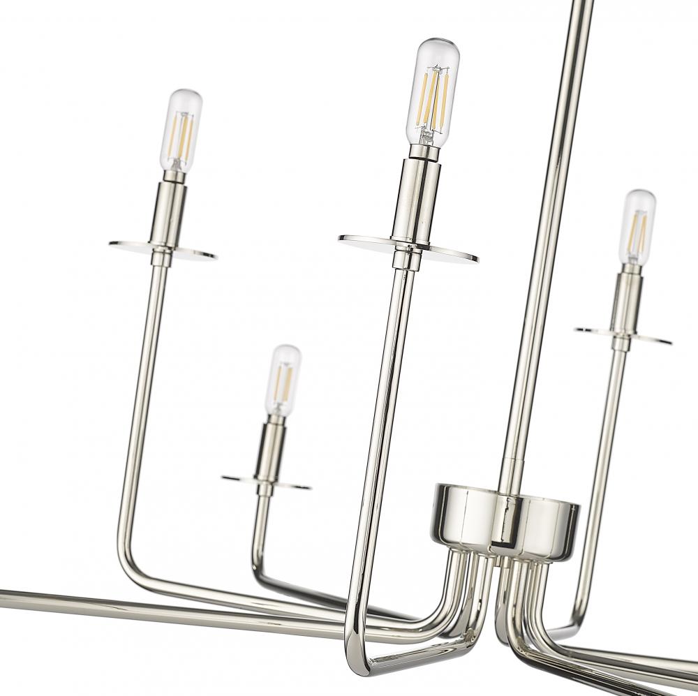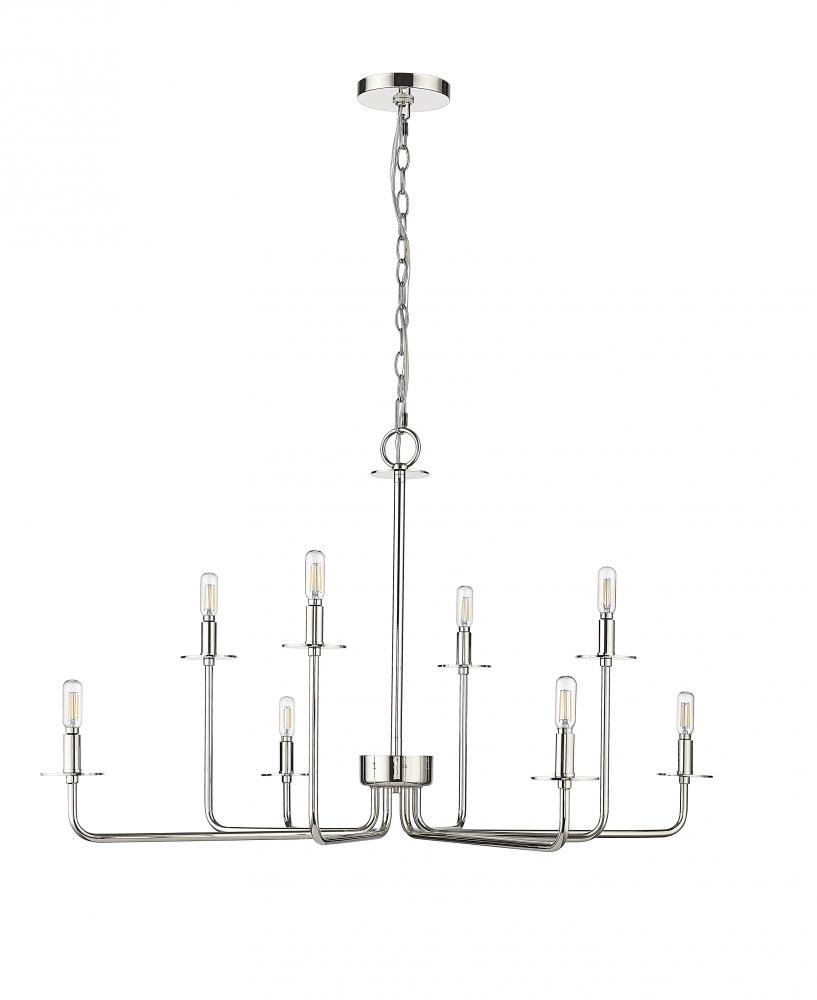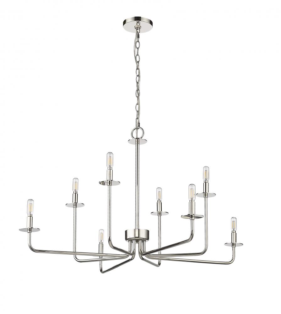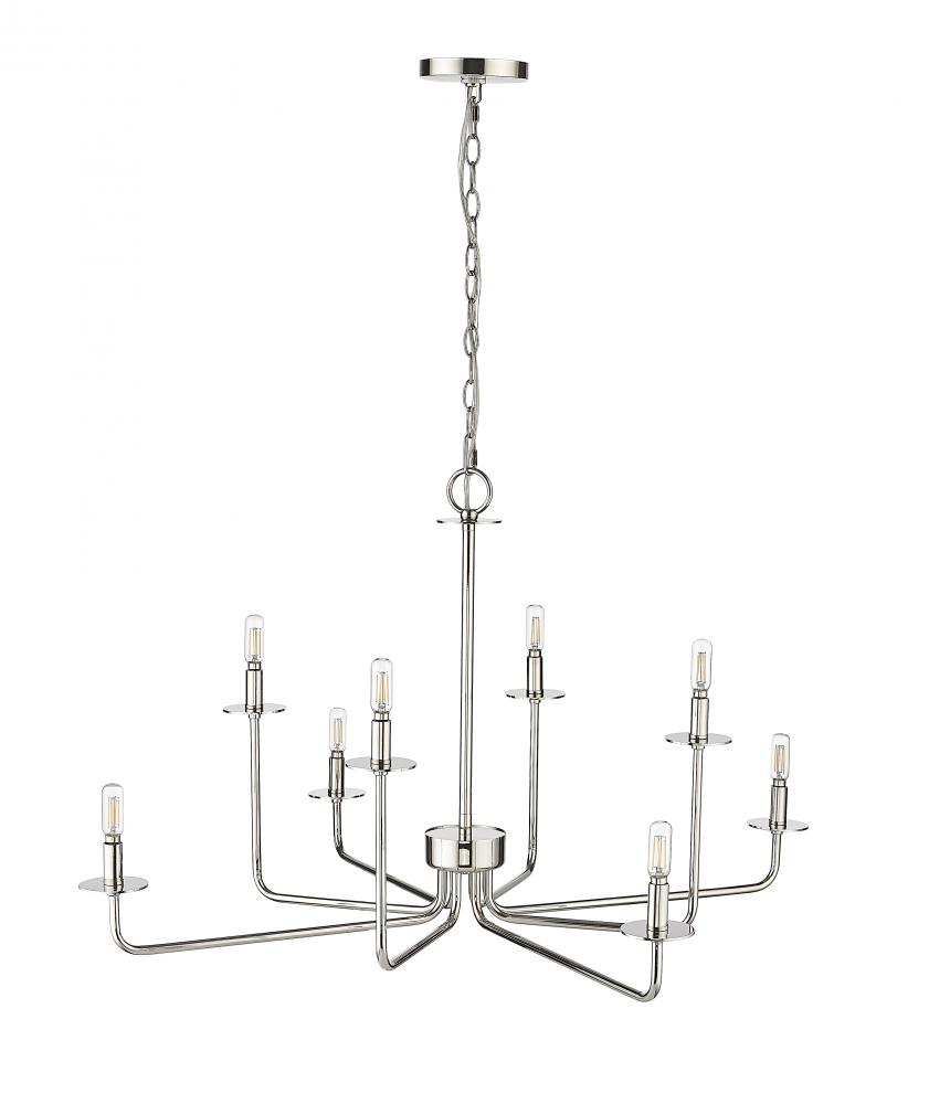 The Marceline Collection is a bold lighting solution with a statement-making classic silhouette for any modern or transitional interior. Featuring right-angled arms in various heights and topped with candle-style sconces, these fixtures are available in either 8-light or 1 options. Finished in matte black, modern gold, or polished nickel, the collection is perfect for fashion-forward design.