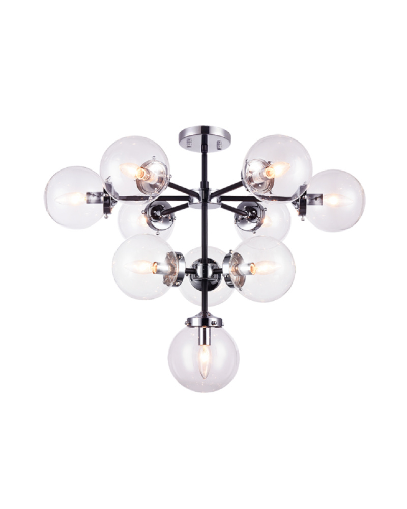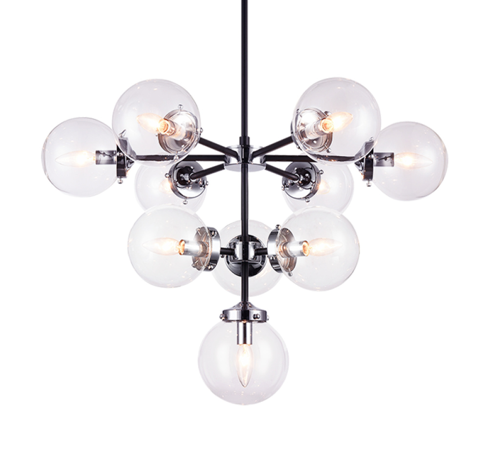 A Mid-Century style that will work with many décors. The series comes in two finishes, Aged Gold Brass and Chrome with Matte Black accents. The finished look can be completely different whether you choose opal or clear glass. The fixtures include a 2-inch rod that you can convert to semi-flush pieces instead of a chandelier. This series can brighten any room with its timeless style and versatile design.