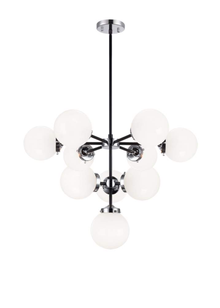 A Mid-Century style that will work with many décors. The series comes in two finishes, Aged Gold Brass and Chrome with Matte Black accents. The finished look can be completely different whether you choose opal or clear glass. The fixtures include a 2-inch rod that you can convert to semi-flush pieces instead of a chandelier. This series can brighten any room with its timeless style and versatile design.