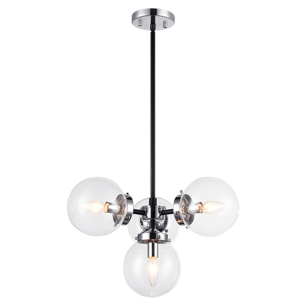 A Mid-Century style that will work with many décors. The series comes in two finishes, Aged Gold Brass and Chrome with Matte Black accents. The finished look can be completely different whether you choose opal or clear glass. The fixtures include a 2-inch rod that you can convert to semi-flush pieces instead of a chandelier. This series can brighten any room with its timeless style and versatile design.