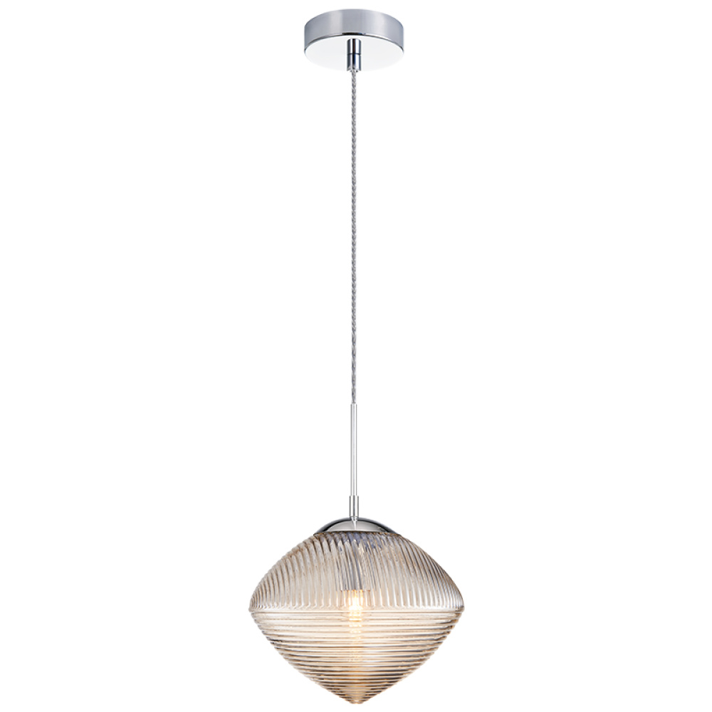 Pendant with a spiral and clean lined design in Cognac or Smoked glass would be a stunning focal point over an island or cozy lounge area. Comes in 3 styles of glass in Chrome and Matte Black canopy.