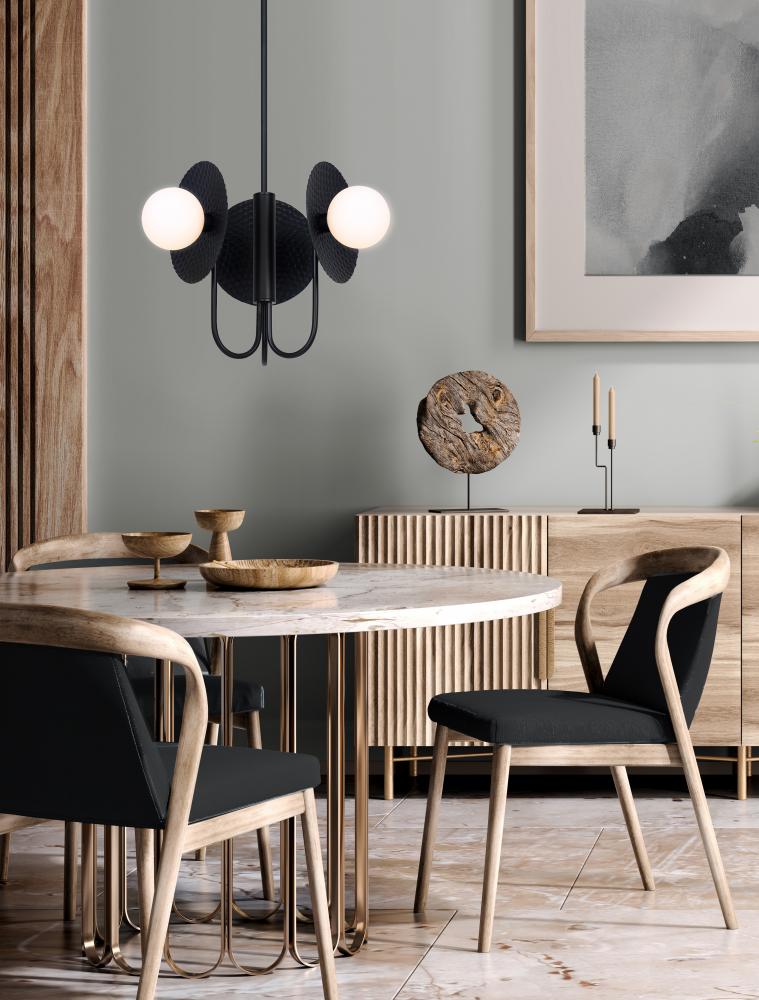 MIERKA, ICH1209A03BK9, MBK Color, 3 Lt Rod Chandelier, Flat Opal Glass, 40W Type G9, 17.5inch W x 19.625 - 61.625inch H