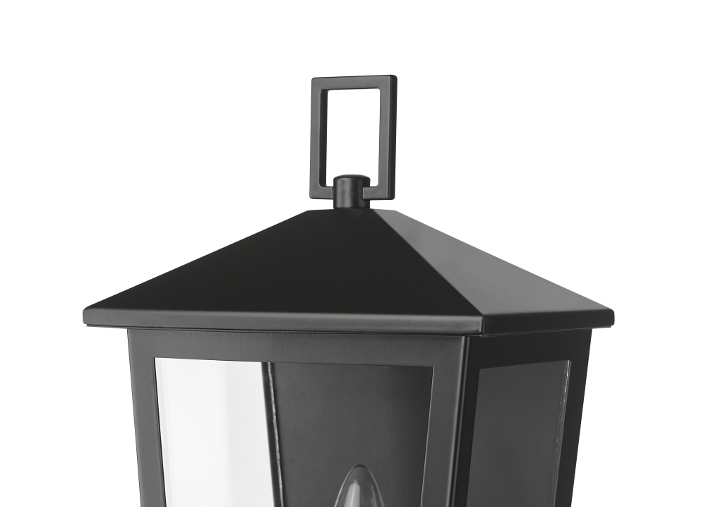 The classic lantern profile receives a decidedly modern makeover with the Munger Family of outdoor lighting. These stately fixtures feature angular details creating a tailored look and are punctuated with crystal clear glass panels. Finished in durable powder coat black, the family is available as 1- or 2-light sconces, 1-light hanging lantern, and 1-light post lamp. From the entryway, down the walk, and to the end of the drive, the overall effect is one of understated grandeur.