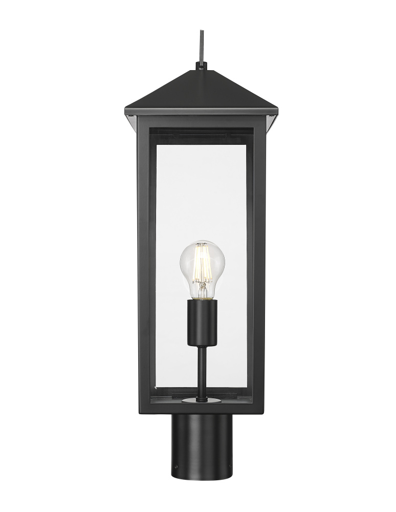 The classic lantern profile receives a decidedly modern makeover with the Munger Family of outdoor lighting. These stately fixtures feature angular details creating a tailored look and are punctuated with crystal clear glass panels. Finished in durable powder coat black, the family is available as 1- or 2-light sconces, 1-light hanging lantern, and 1-light post lamp. From the entryway, down the walk, and to the end of the drive, the overall effect is one of understated grandeur.