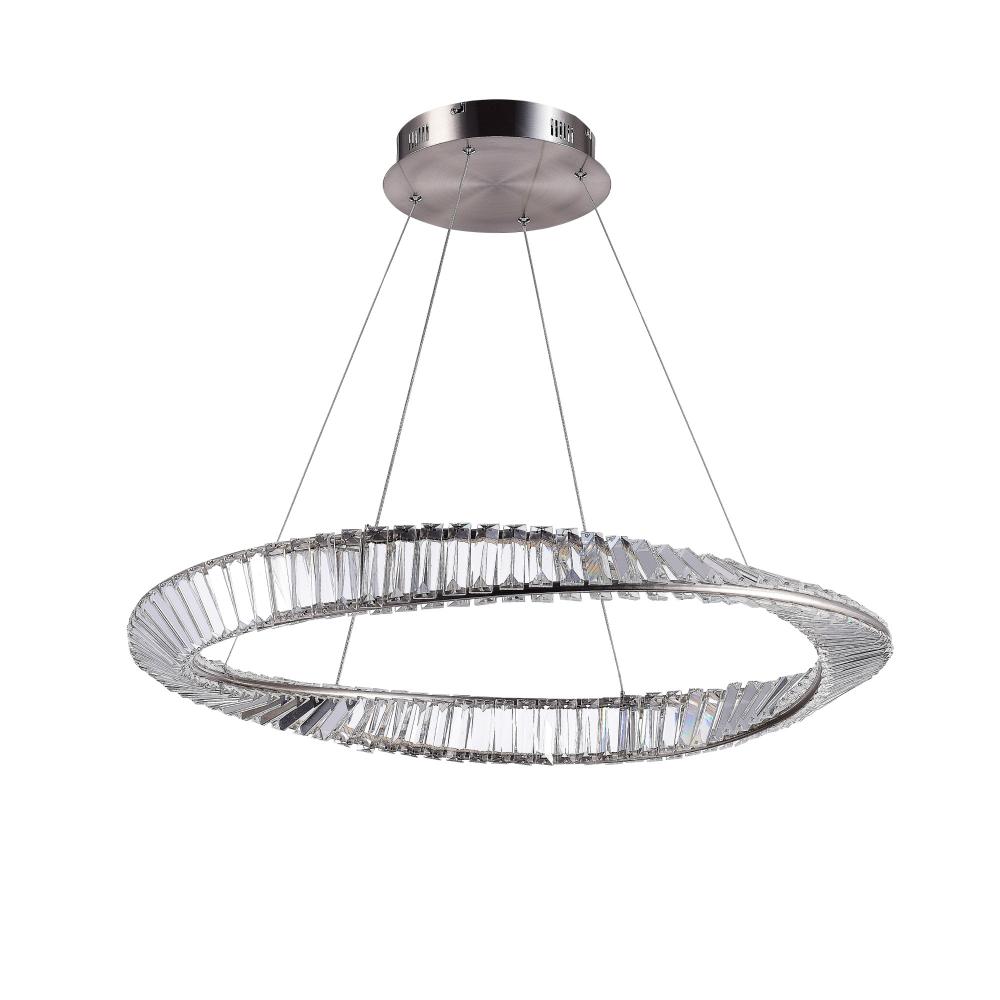 Sparkling from every angle, the Stella collection is simply timeless. The pendant is draped with authentic crystal and complimented with a Satin Nickel frame (also available in Brushed Brass). As your eye follows the frame it twists around the crystal in a unique fashion. This pendant is illuminated by bright and energy efficient LEDs (4 sizes available).