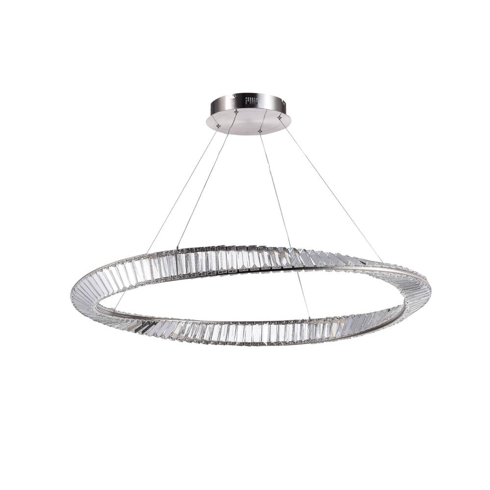 Sparkling from every angle, the Stella collection is simply timeless. The pendant is draped with authentic crystal and complimented with a Satin Nickel frame (also available in Brushed Brass). As your eye follows the frame it twists around the crystal in a unique fashion. This pendant is illuminated by bright and energy efficient LEDs (4 sizes available).