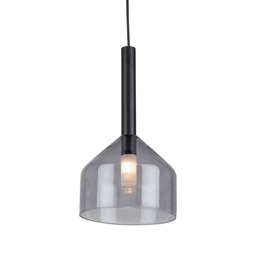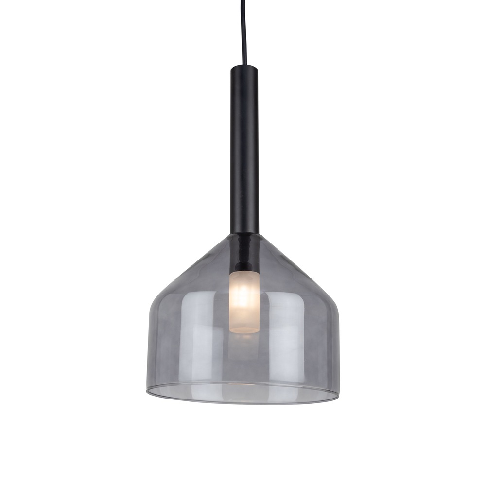 The Kali collection showcases a captivating design, featuring lightly smoked glassware suspended with sleek black wiring. Each glass element has an interior white bulb cover, adding a touch of subtlety to the lighting and creating a soft, ambient glow. Single light pendant shown.