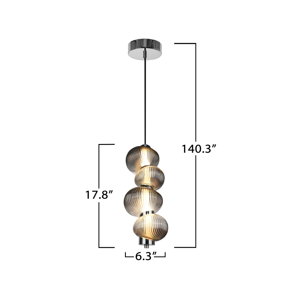 The Ariel Collection LED pendant is a striking fusion of contemporary design and refined sophistication. Its ribbed smoke ombre reflective glass encases a radiant LED white tube, creating a captivating interplay of light and shadow. Complemented by sleek chrome accents and a black-plated frame, this height-adjustable design adds a touch of elegance and adaptability to any setting.