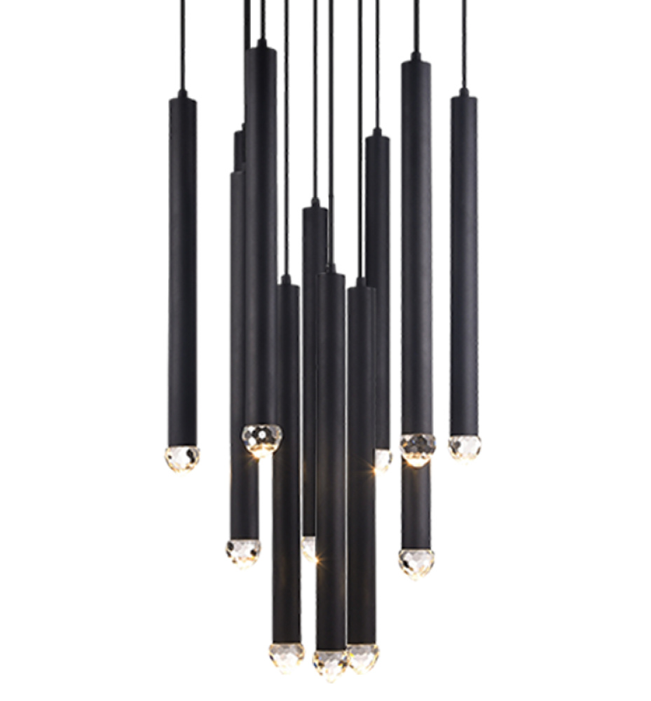 Inspired by the traditional windchime, Reign is designed with cylinders with an added detailed glass shade, paired with striking LED. This collection provides a contemporary yet dramatic feel. This bold collection is available in 3 finishes: Aged Gold Brass, Chrome and Matte Black.