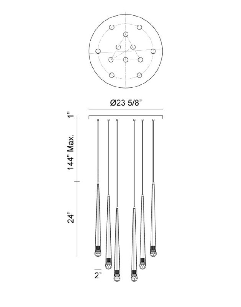 A modern cascading LED pendant offered in a Matte Black Finish and a Chrome finish. This collection has a contemporary feel with added interest in the detailed glass shade. Both finishes have a black fabric cord to complete the style.
