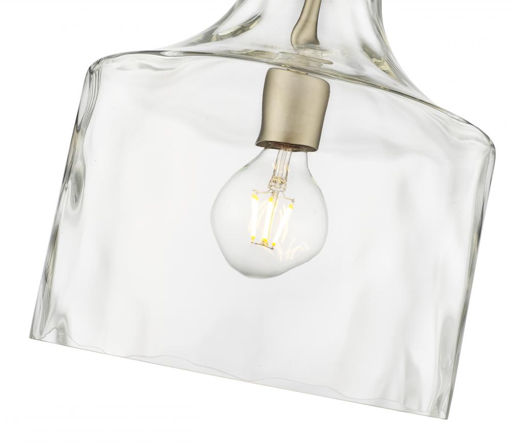 The Santorini Family of pendant lighting is distinguished by delicately suspended, handblown-style water glass shades, creating a playful dappled lighting effect. Available as 1- and 4-light options, the fixtures are finished in matte black, modern gold, or polished nickel. A unique design statement, these pendants complement any design scheme from ultra-modern to midcentury.