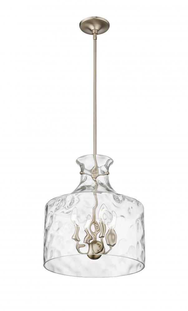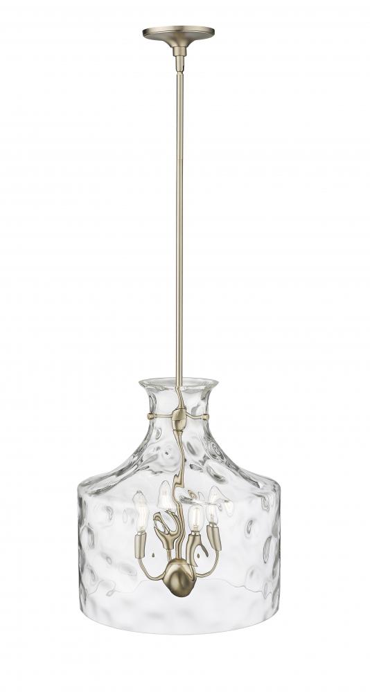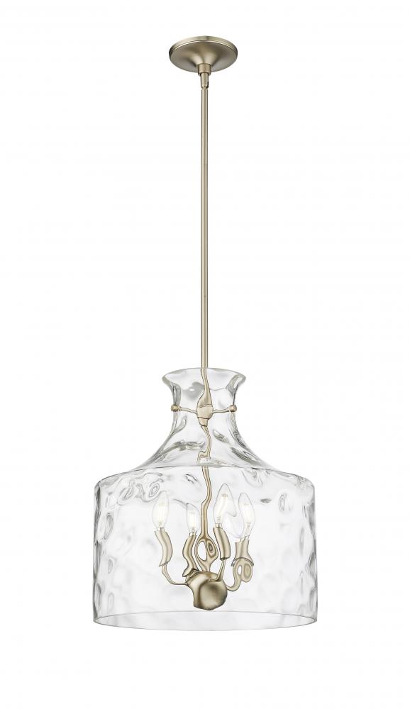 The Santorini Family of pendant lighting is distinguished by delicately suspended, handblown-style water glass shades, creating a playful dappled lighting effect. Available as 1- and 4-light options, the fixtures are finished in matte black, modern gold, or polished nickel. A unique design statement, these pendants complement any design scheme from ultra-modern to midcentury.