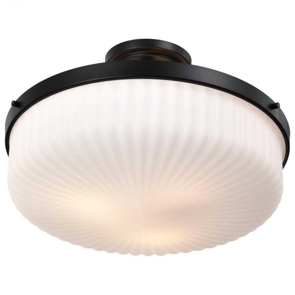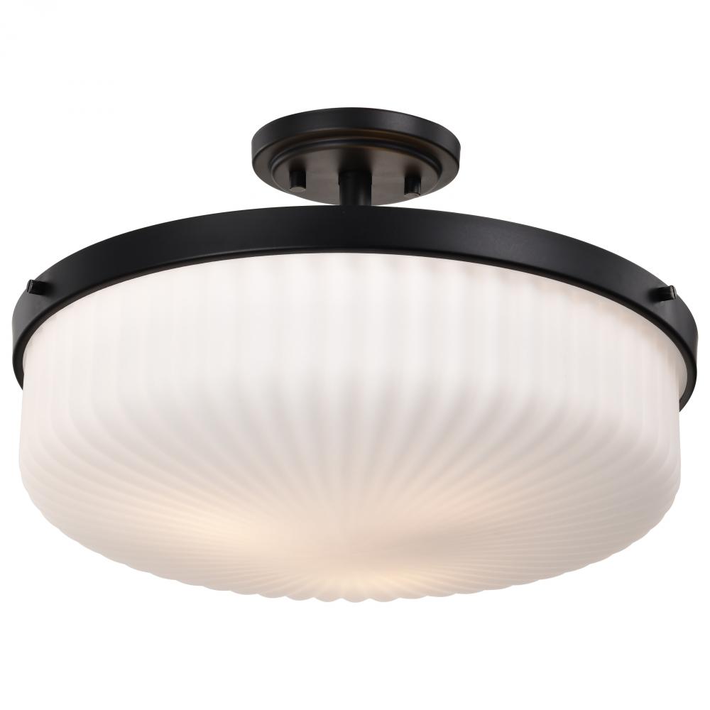 Solara; Semi Flush Mount; Matte Black Finish; Frosted Ribbed Glass
