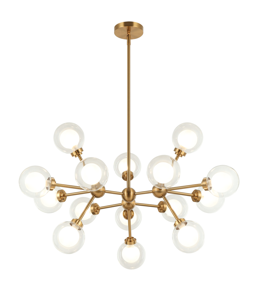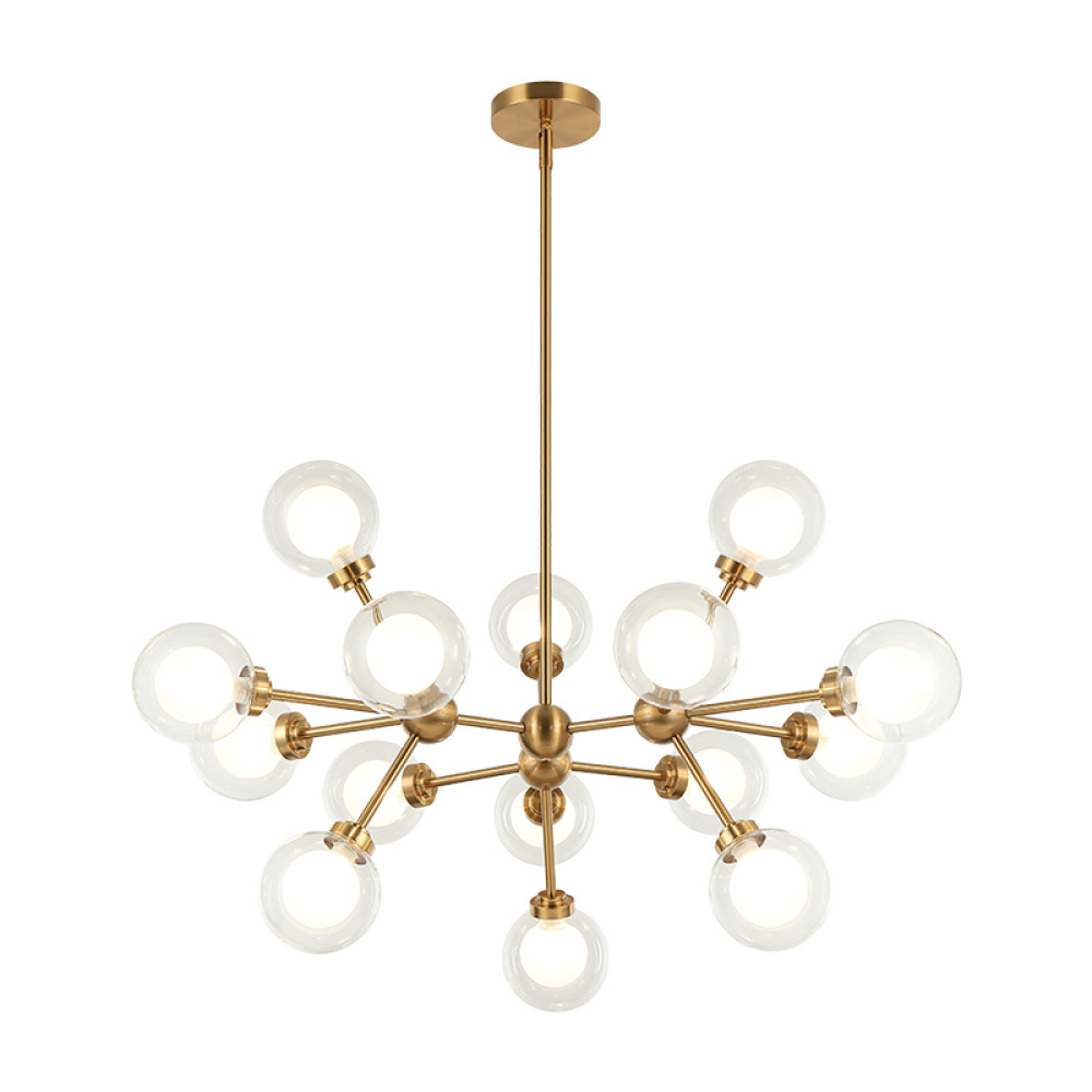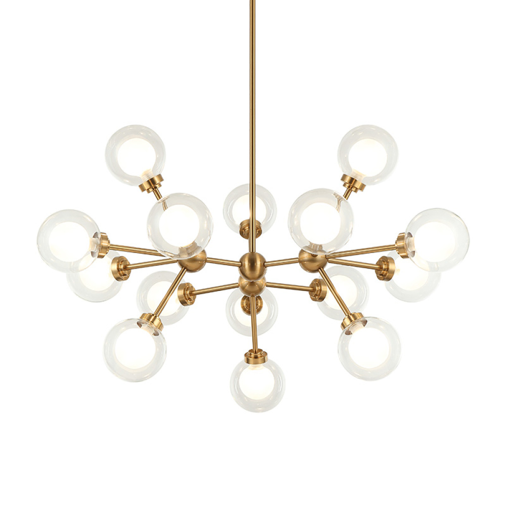 A chandelier inspired by the solar system, the Solaris comes with white opal inner glass and clear outer glass.The design typically aims to capture a celestial, orbital aesthetic.