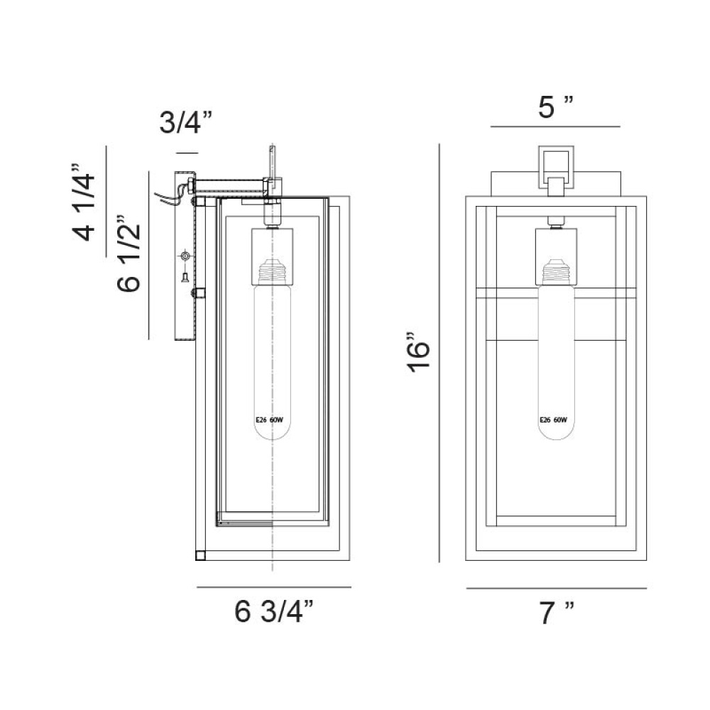 Featuring a distinctive double-frame design with a Matte Black metal outer and inner frame, the Stratford creates a layered, architectural look. The double-frame style adds depth and visual interest, enhancing the overall modern and industrial aesthetic. This design is ideal for outdoor settings such as patios, or walkways, where it can provide ample illumination while adding a unique touch to the space.