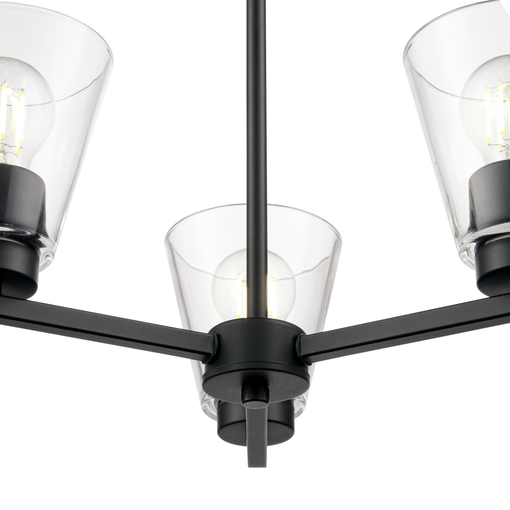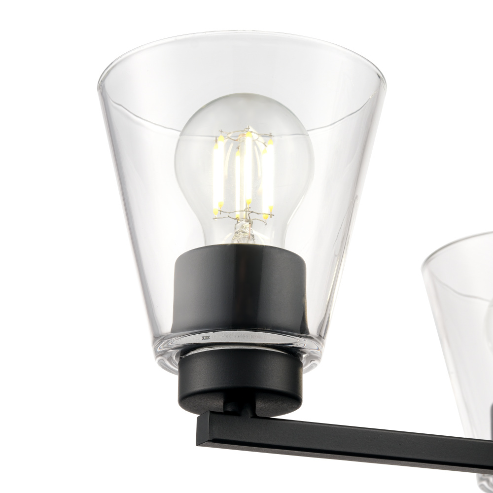 Perfectly flared crystal-clear glass shades framed against streamlined fixtures set a unique design tone for the Strayhan Family of interior lighting. Perfect for illuminating any location from the entryway on throughout the entire home, these fixtures are available as a 1-light sconce, 1-light pendant, 2-light flushmount; 1, 2, 3 and 4-light vanity; and 3, 5, and 9-light chandelier. Finished in matte black, brushed nickel, or modern gold, these understated fixtures infuse a cosmopolitan design sense into any interior space.
