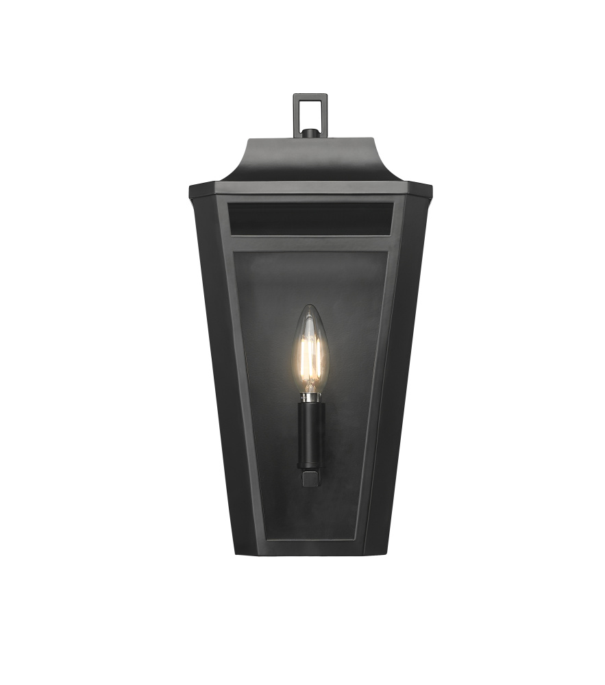 Evocative of classic French Gothic design, The Sumerlin Family of exterior lighting blends an elegant powder coat black finish with modern gold candle sleeves for a truly stunning effect. Tailored details topped with a contemporary styled finial are set against a full backplate for a truly fashionable and stately effect. Perfect for illuminating courtyards, entryways, and colonnades, these lanterns are a graceful design element for any exterior.