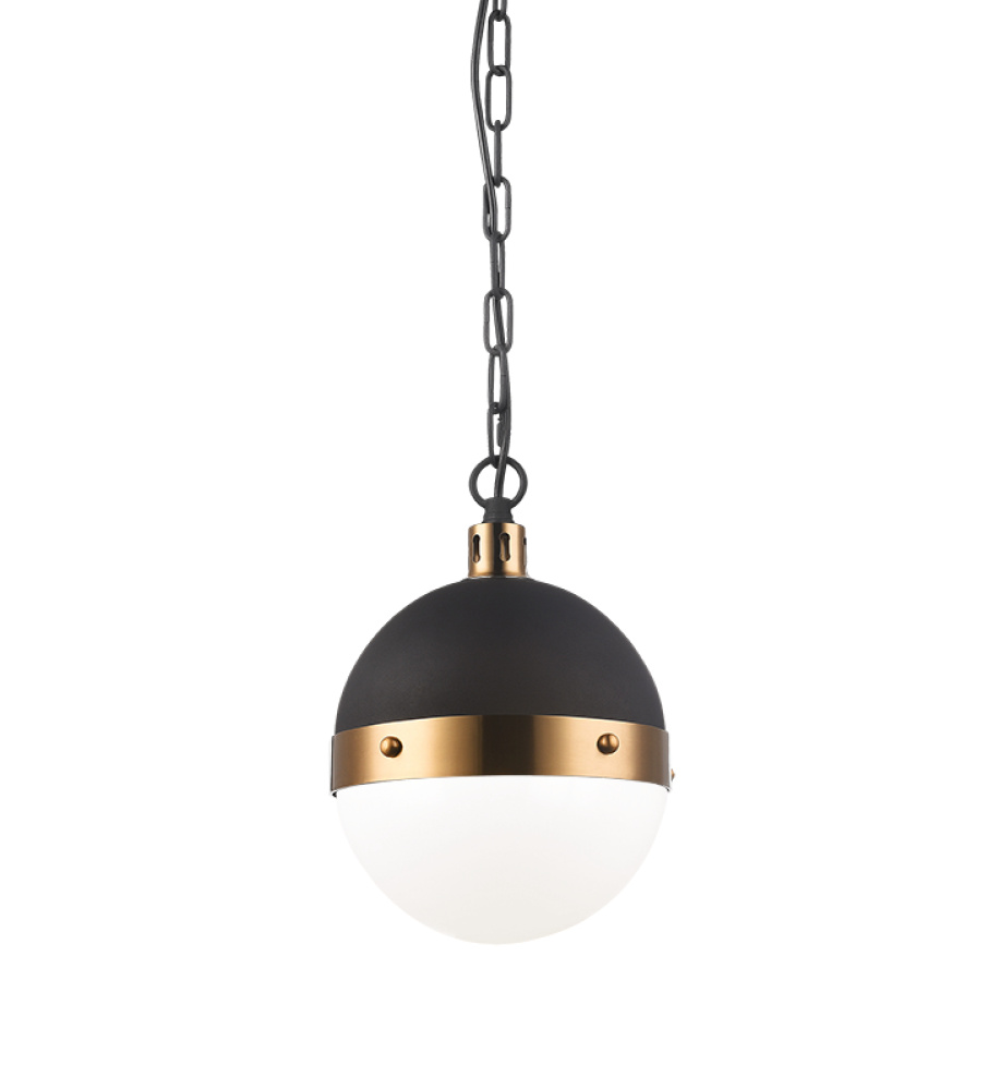 The Torino Pendants take elegance and simplicity and blends them perfectly. The combination of Matte Black and Aged Gold Brass or Brushed Nickel metal meeting in the middle with opal glass or clear glass makes a powerful statement in any room.Two sized globes are available in both finishes, use them individually or hang multiple pendants grouped together for a masterpiece. LIGHTBULBS NOT INCLUDED