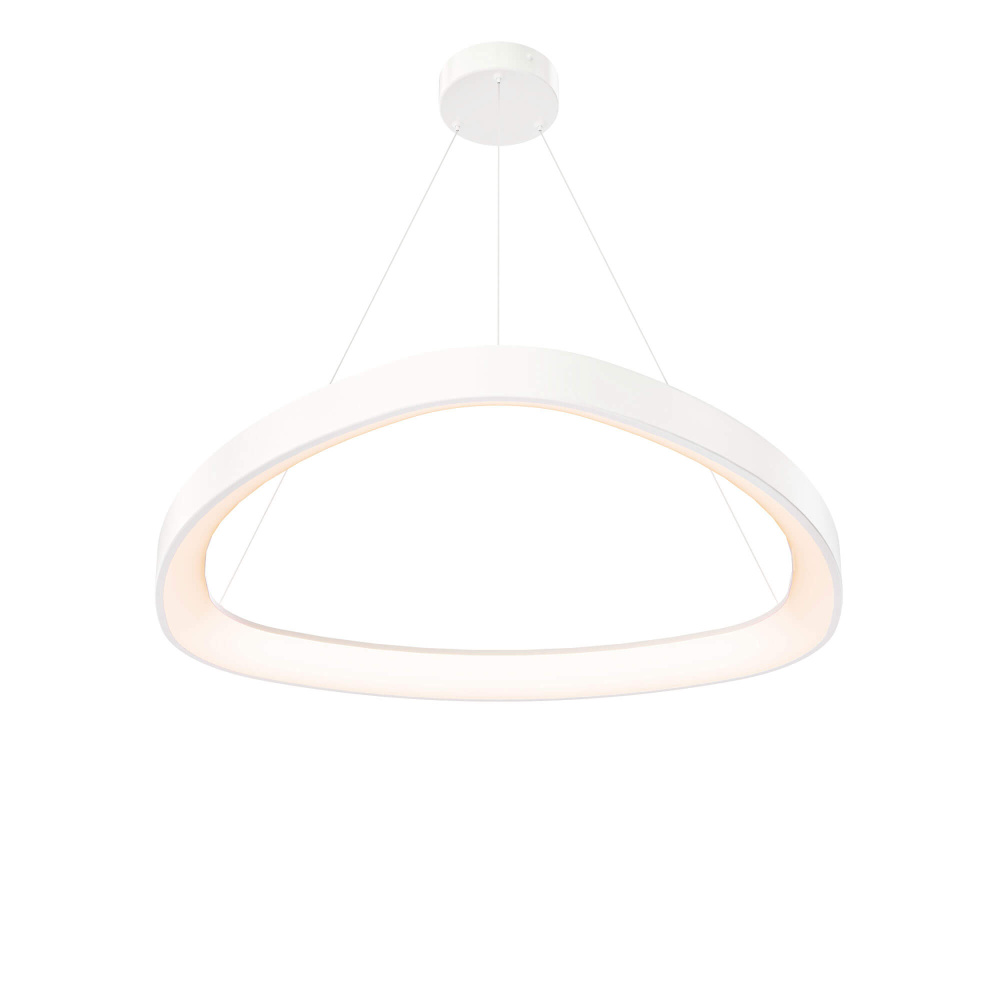Discover contemporary elegance with the Pyra, a 34-inch rounded triangular pendant light available in a range of finishes and customizable 5CCT options.
