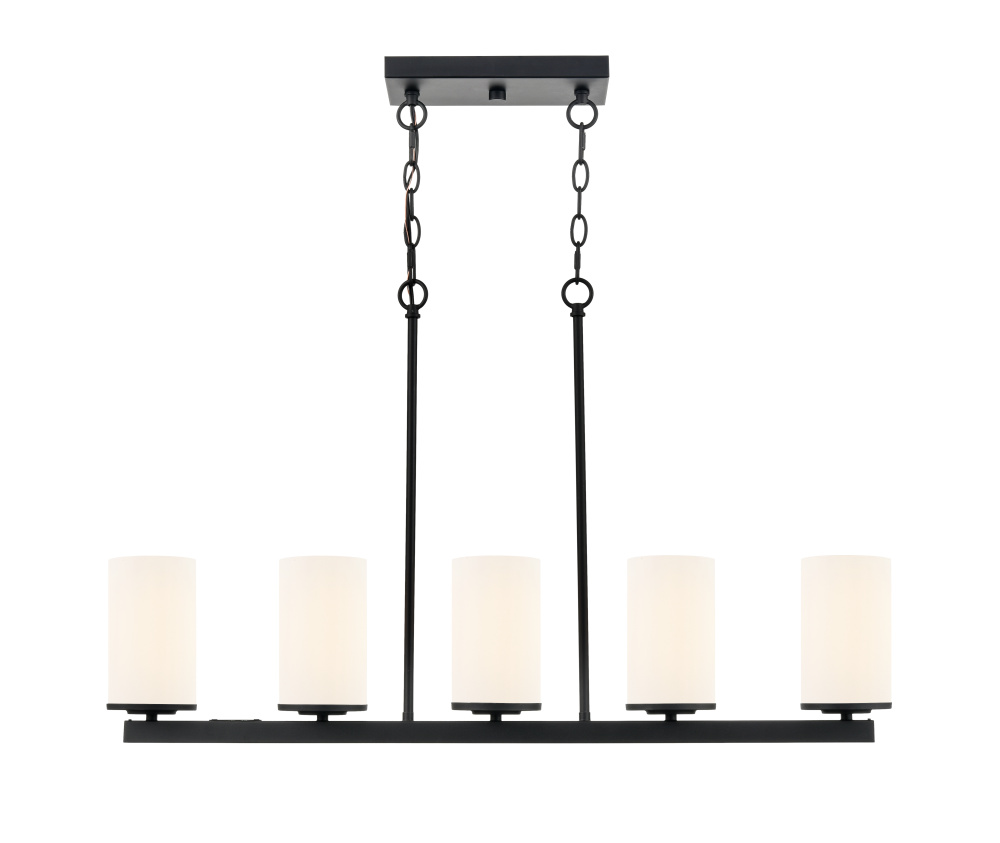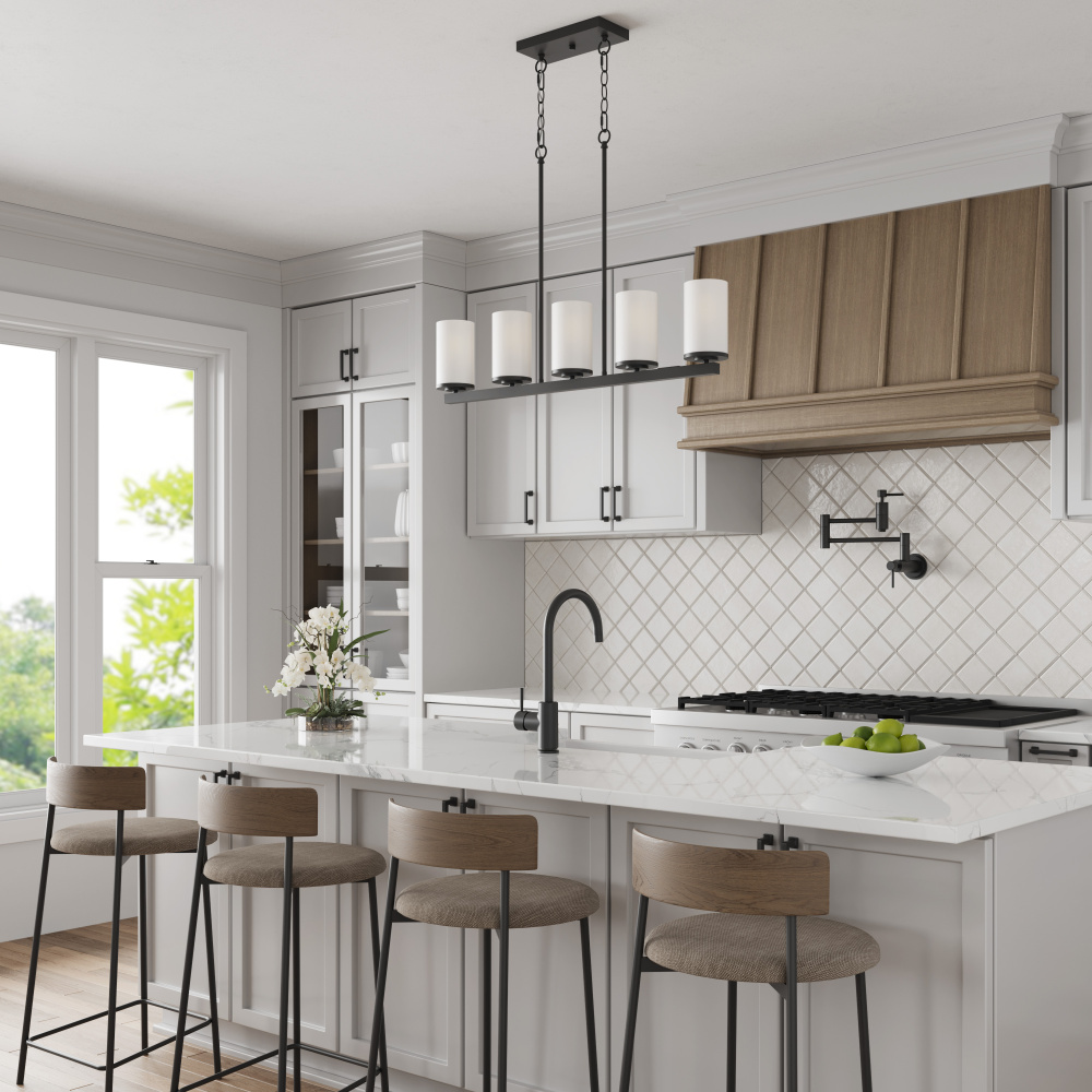 Striking industrial design springs to life with the sumptuous style of the Verlana Family creating the perfect solution for any interior from Scandinavian simplicity to Mid-Century Modern. Cylindrical shades, in clear or white glass, perfectly compliment the sleek lines of these luminaires finished in brushed nickel, chrome, matte black, or modern gold. Available as 1-light sconce, 1-light mini pendant; 2, 3, or 4-light vanity, 2-light semi-flush mount, 5-light island; or 3 or 5-light chandelier, these splendid fixtures set a sophisticated tone for any interior scheme.
