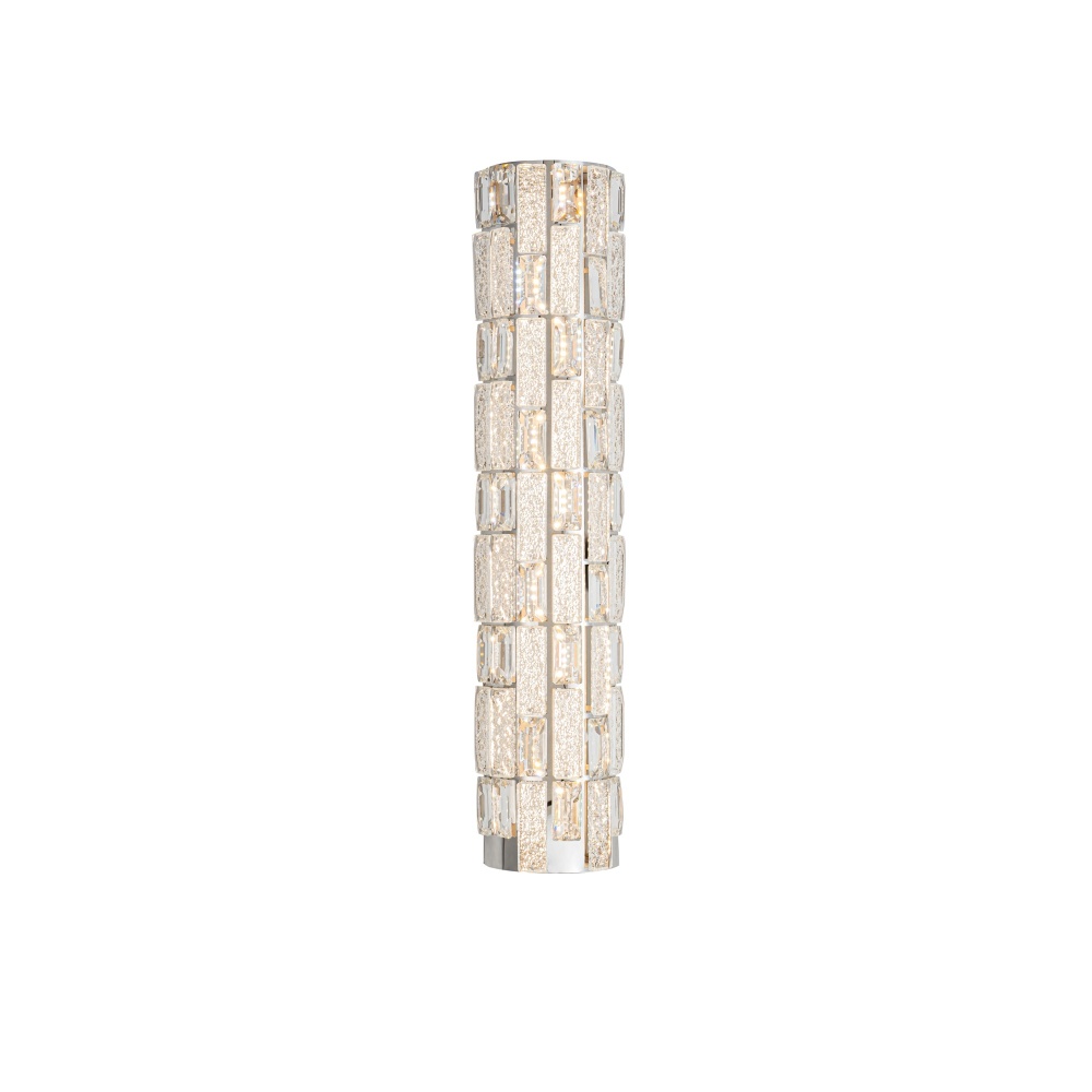 Glistening like a crown of starlight, this LED crystal wall sconce from the “Elegance” collection offers a breathtaking harmony of luxury and functionality. Its polished nickel frame embraces a dazzling array of crystals, while the 3CCT switch allows you to tailor the ambiance with warm, neutral, or cool light (3K, 4K, 5K). This model can be mounted vertically or horizontally.