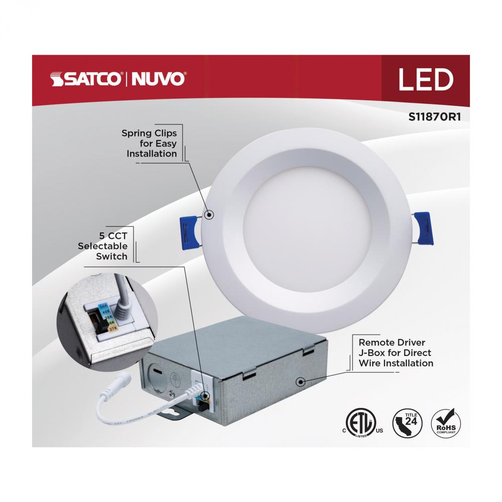 SATCO NUVO's low-profile 4" round regress baffle downlight, S11870R1, combines performance, versatility, and ease of installation. It features 5 CCT selectable settings (2700K–5000K) to accommodate a wide range of lighting preferences, while the