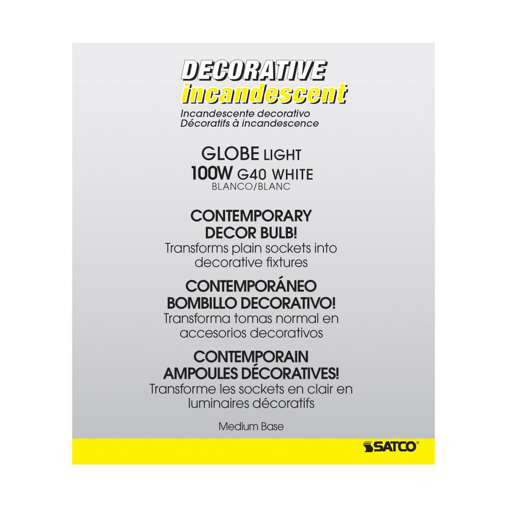 100 Watt G40 Incandescent; Gloss White; 4000 Average rated hours; 1050 Lumens; Medium base; 120 Volt