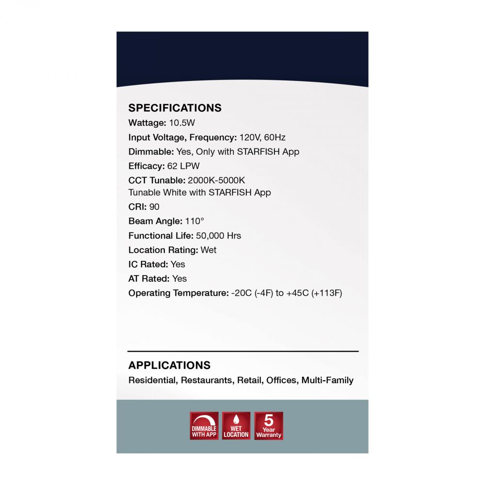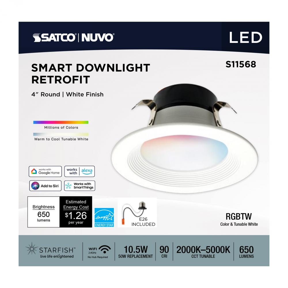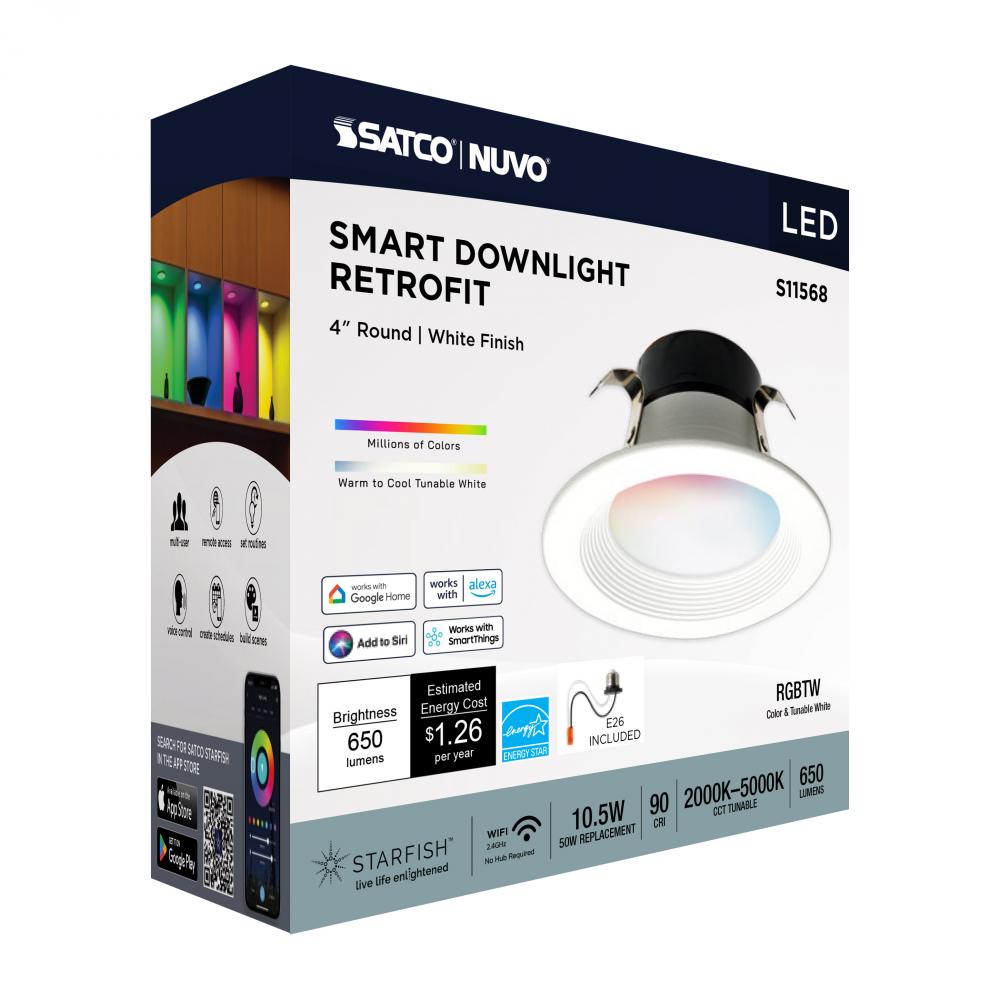 SATCO NUVO's S11568 LED Retrofit Downlight with STARFISH technology is the ultimate choice for smart lighting and ambiance control. Download the STARFISH app to customize any tunable white color temperatures from 2000K warm white to 5000K natural light
