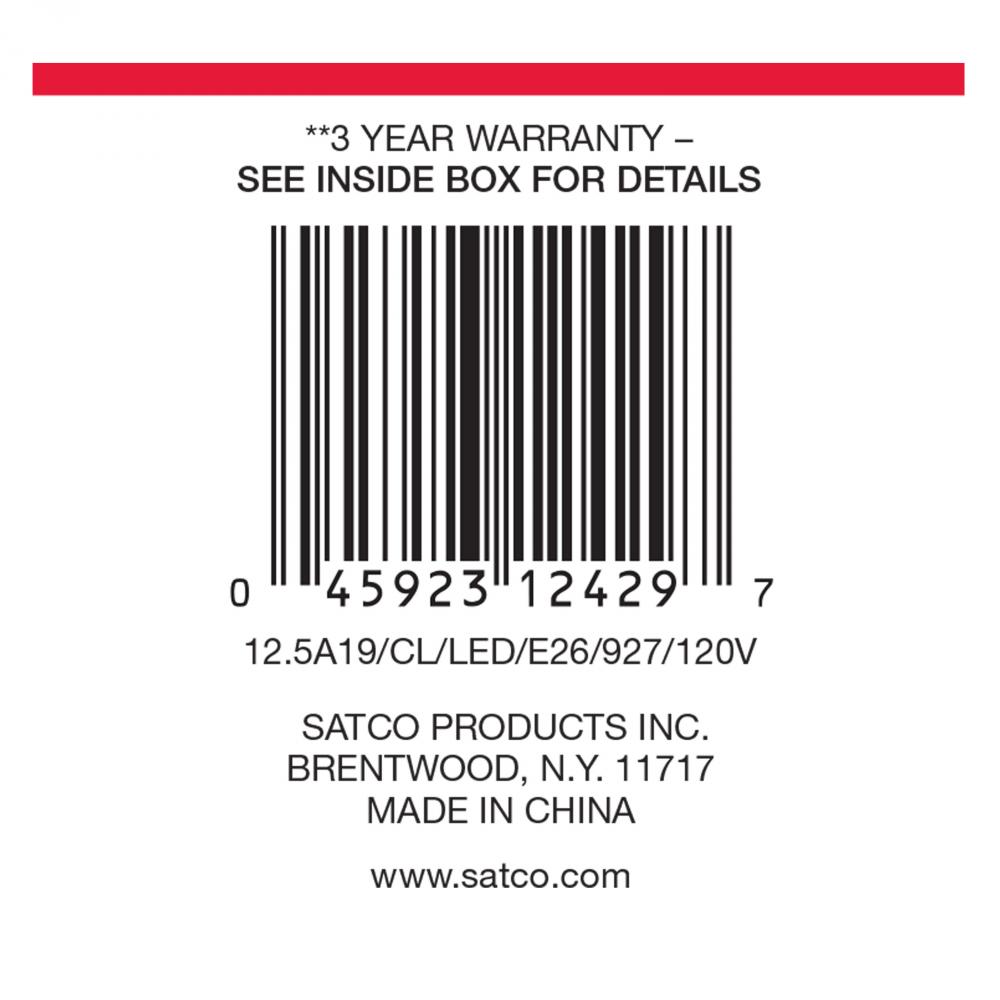 Satco's S12429 12.5-watt A19 lamp is a sleek lighting solution for the home. The clear, dimmable bulb is perfect for living rooms, dining rooms, and office spaces. This energy efficient lighting solution delivers 15,000 hours of warm white light.