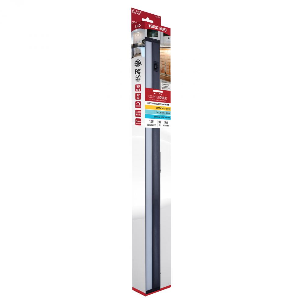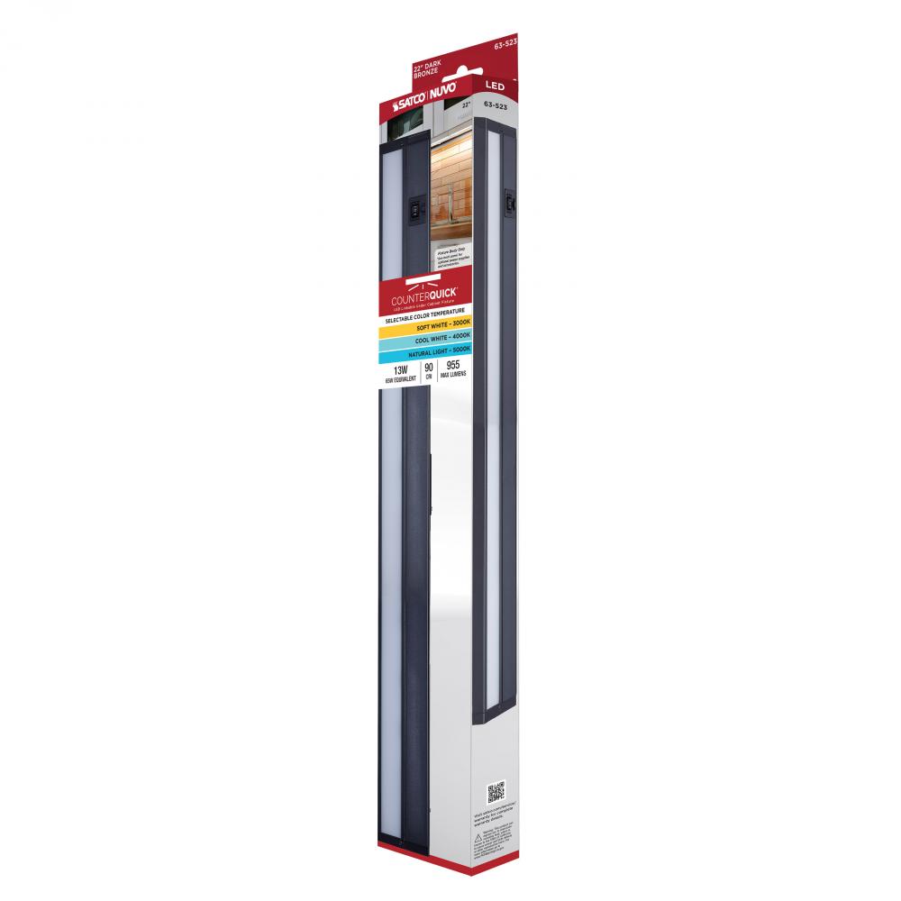 13 Watt 22-Inch LED Under Cabinet; 30K/40K/50K CCT Selectable; Dark Bronze; 120 Volt