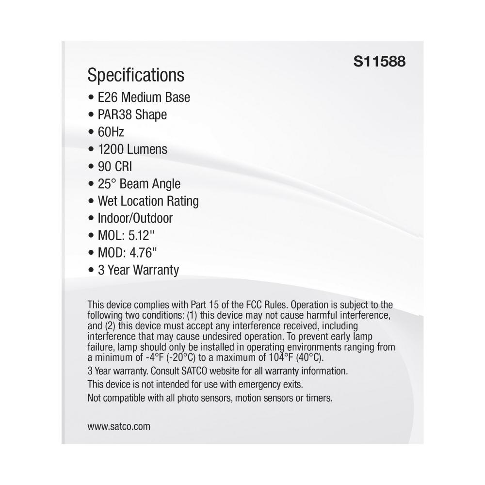 SATCO NUVO's LED PAR Lamps are the perfect solution for recessed and flood lighting. Offered in PAR20, PAR30, PAR30 Long Neck and PAR38, choose 25, 40 or 60 degree beam angles for the best illumination for your application. All models include a unique