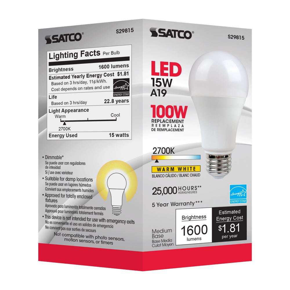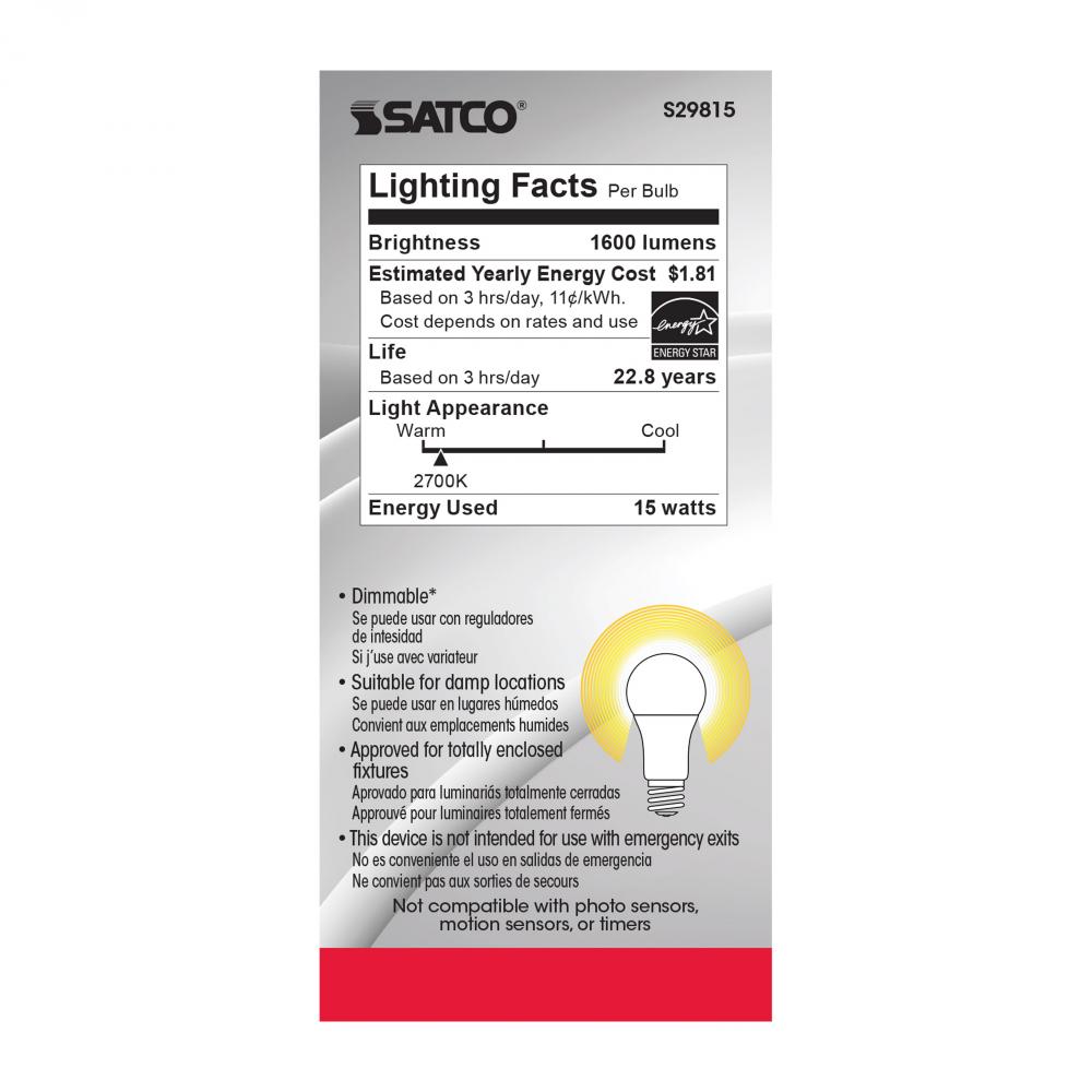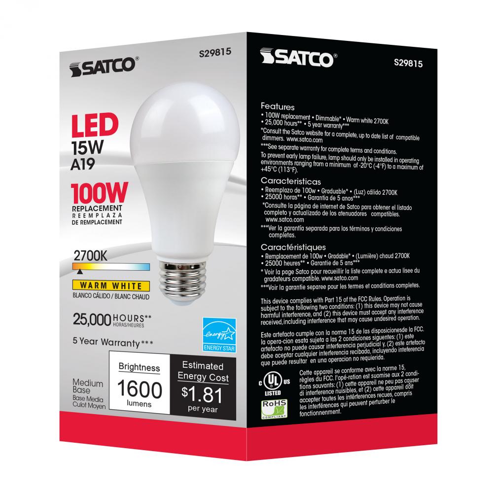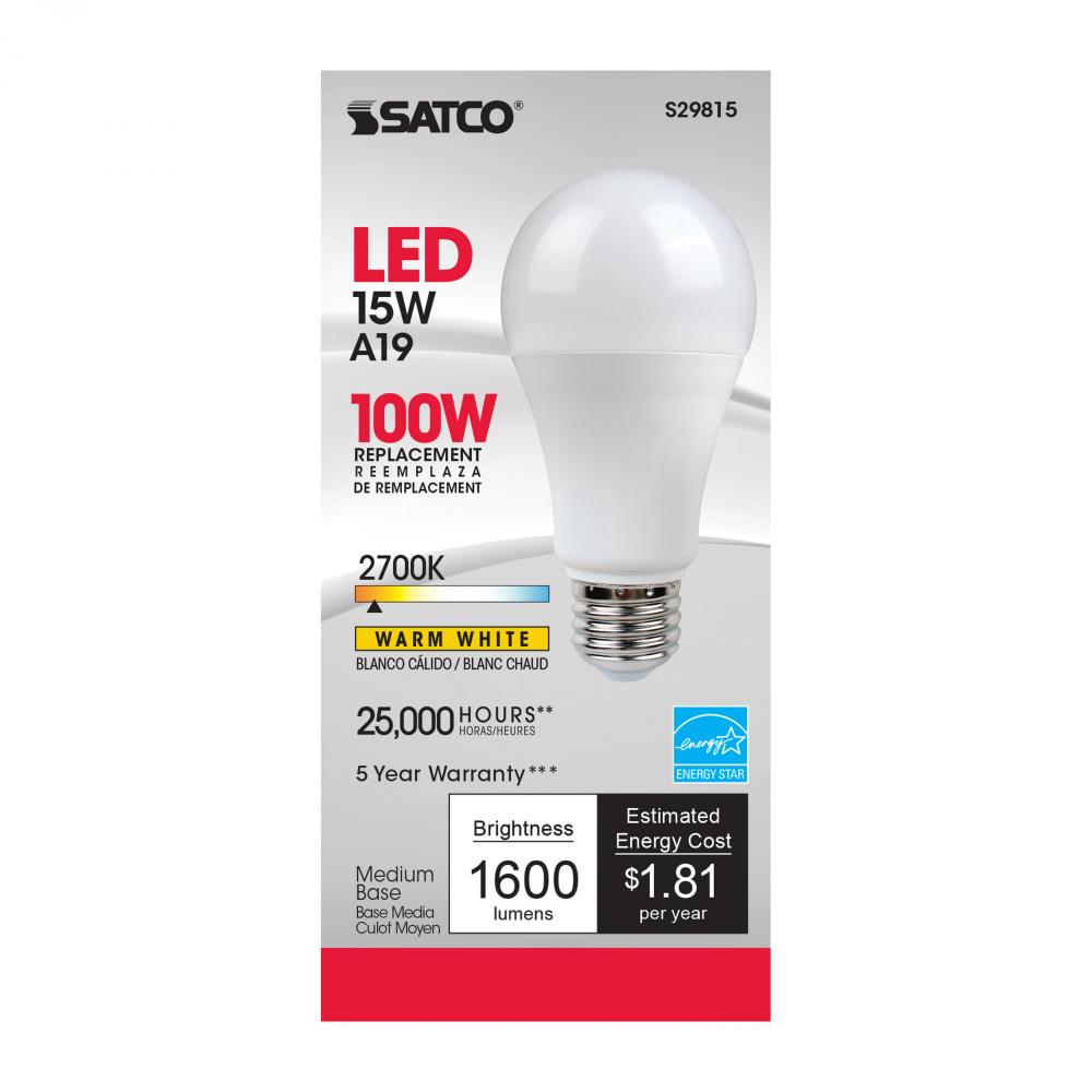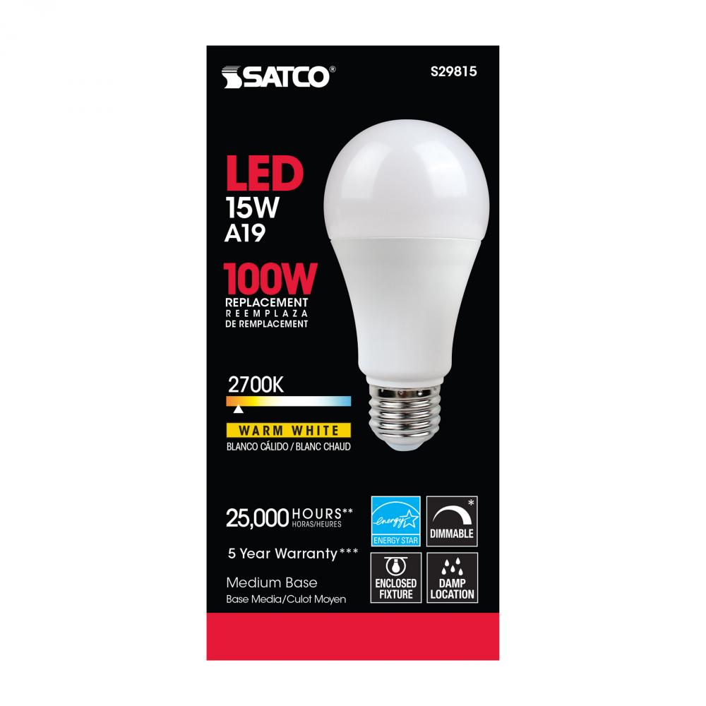 15 Watt; A19 LED; Frosted; 2700K; Medium base; 220 deg. Beam Angle; 120 Volt