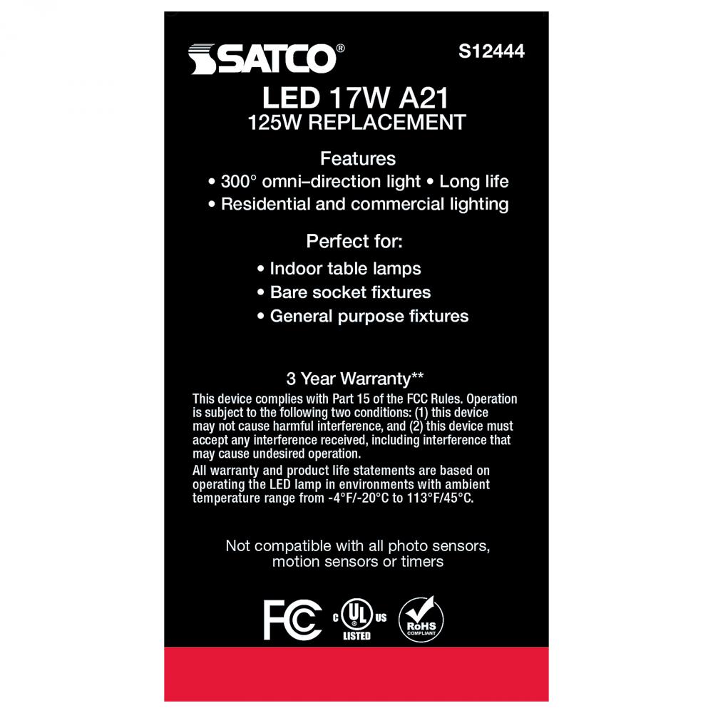 Satco's 17-watt LED lamp is traditional, yet contemporary with its sleek finish and energy saving LED technology. Elegantly illuminate any room in the house with this dimmable, frost finished bulb. Sophisticated and modern, this lamp delivers 15,000 ho