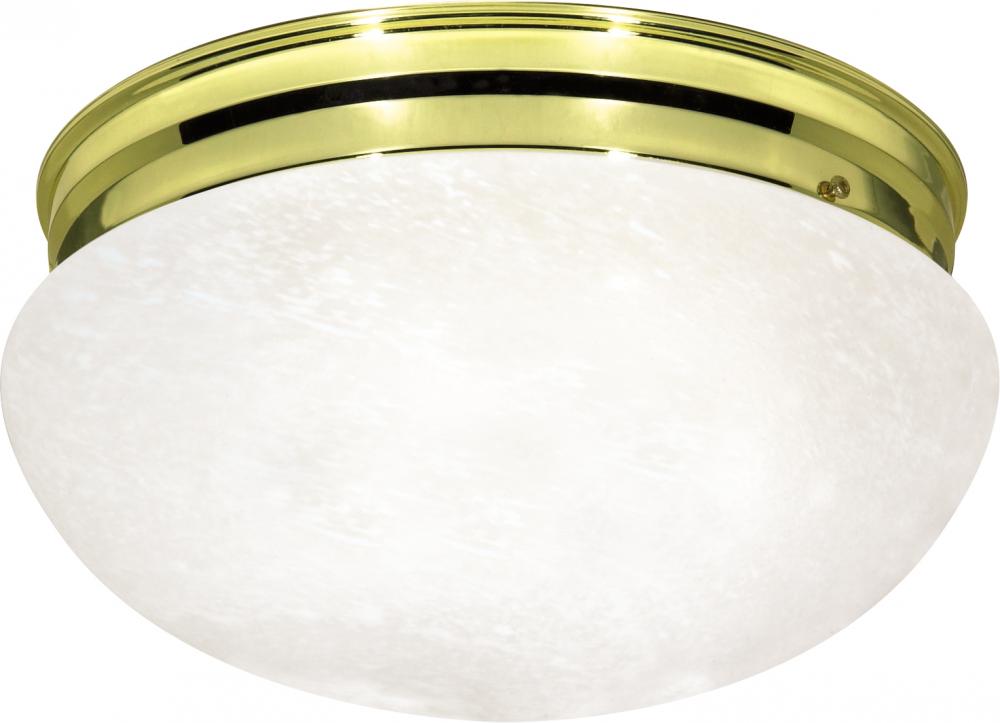 Nuvo's 2 light, 12 inch flush mount ceiling fixture is a dignified lighting solution for the home. Perfect for living rooms, dining rooms, kitchens, and foyers, this polished brass flush mount features dual A19 bulbs behind beautiful alabaster glass in