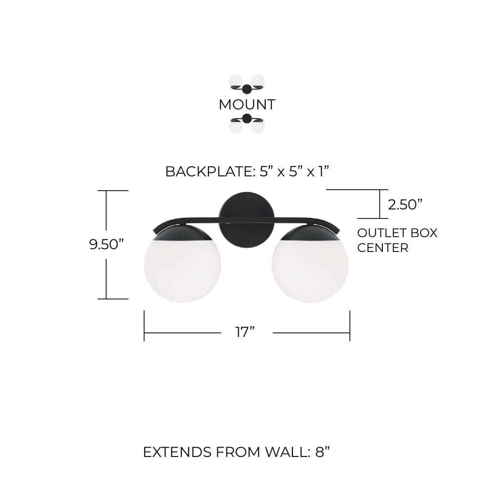 Crafted with circular forms and soft white glass, the Oliver 2-Light Vanity brings effortless glamour to any powder room. The curved arms and accents evoke elegant style, while the Matte Black finish creates a sophisticated contrast.