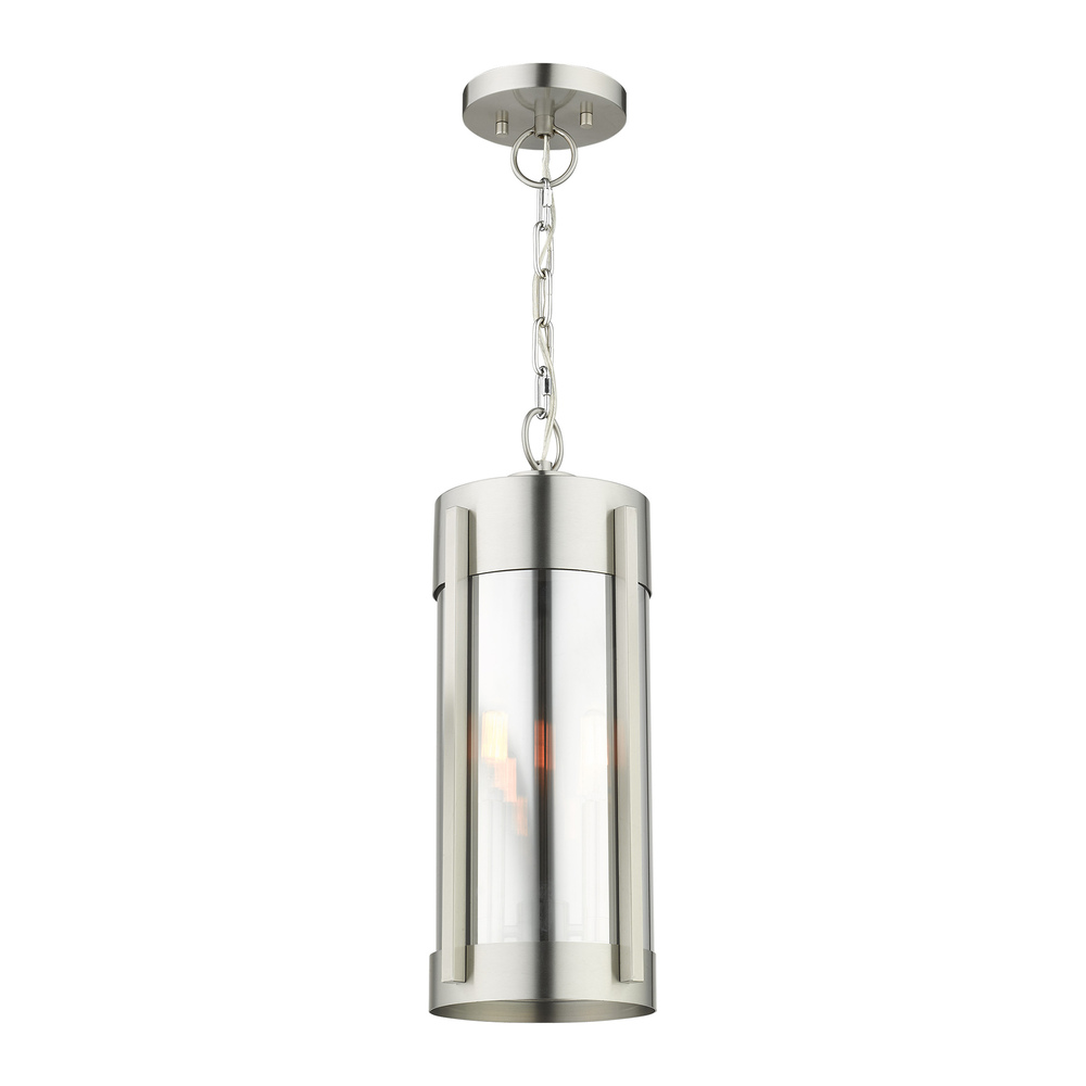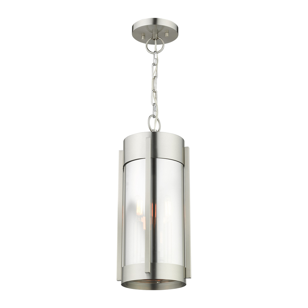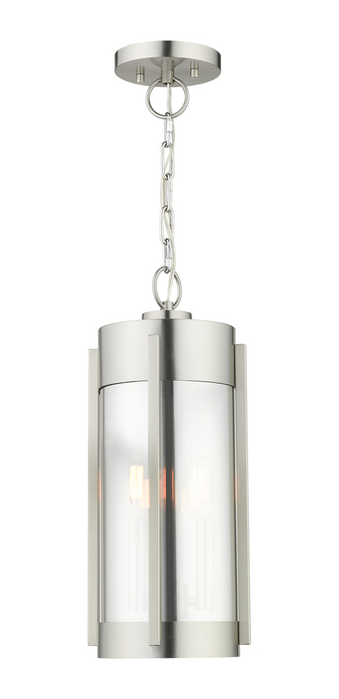 2 Lt Brushed Nickel Outdoor Pendant Lantern