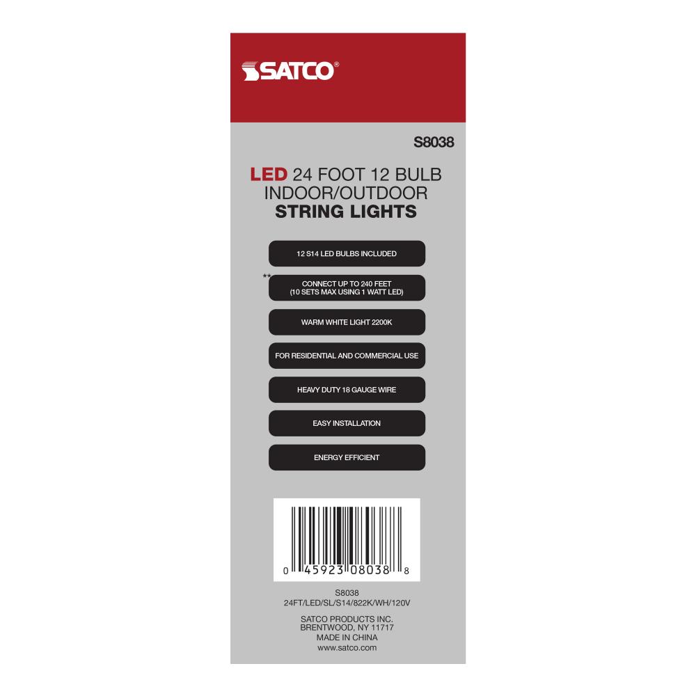 Create a classic look with Satco's new energy saving LED string lights. This 24 foot LED decorative string light will transform any space into a stylish evening experience. Each strand includes 12 energy efficient, vintage style Edison LED light bulbs